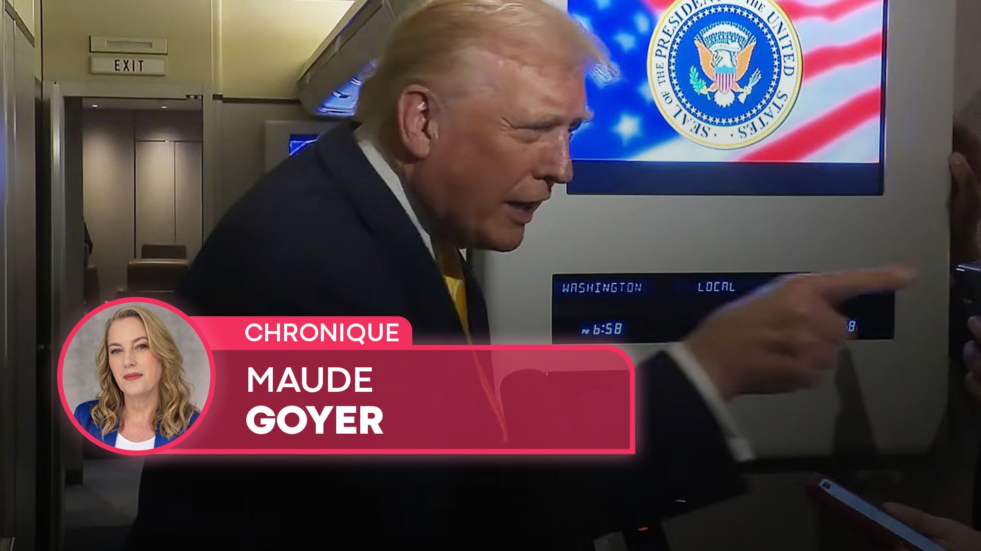 À bord d’Air Force One, la reporter du sérieux média économique Bloomberg, Catherine Lucey, a demandé au président américain pourquoi il n’avait pas encore autorisé la publication du dossier Epstein. Il a répliqué en lui lançant cette insulte au visage, devant son équipe et d’autres journalistes.