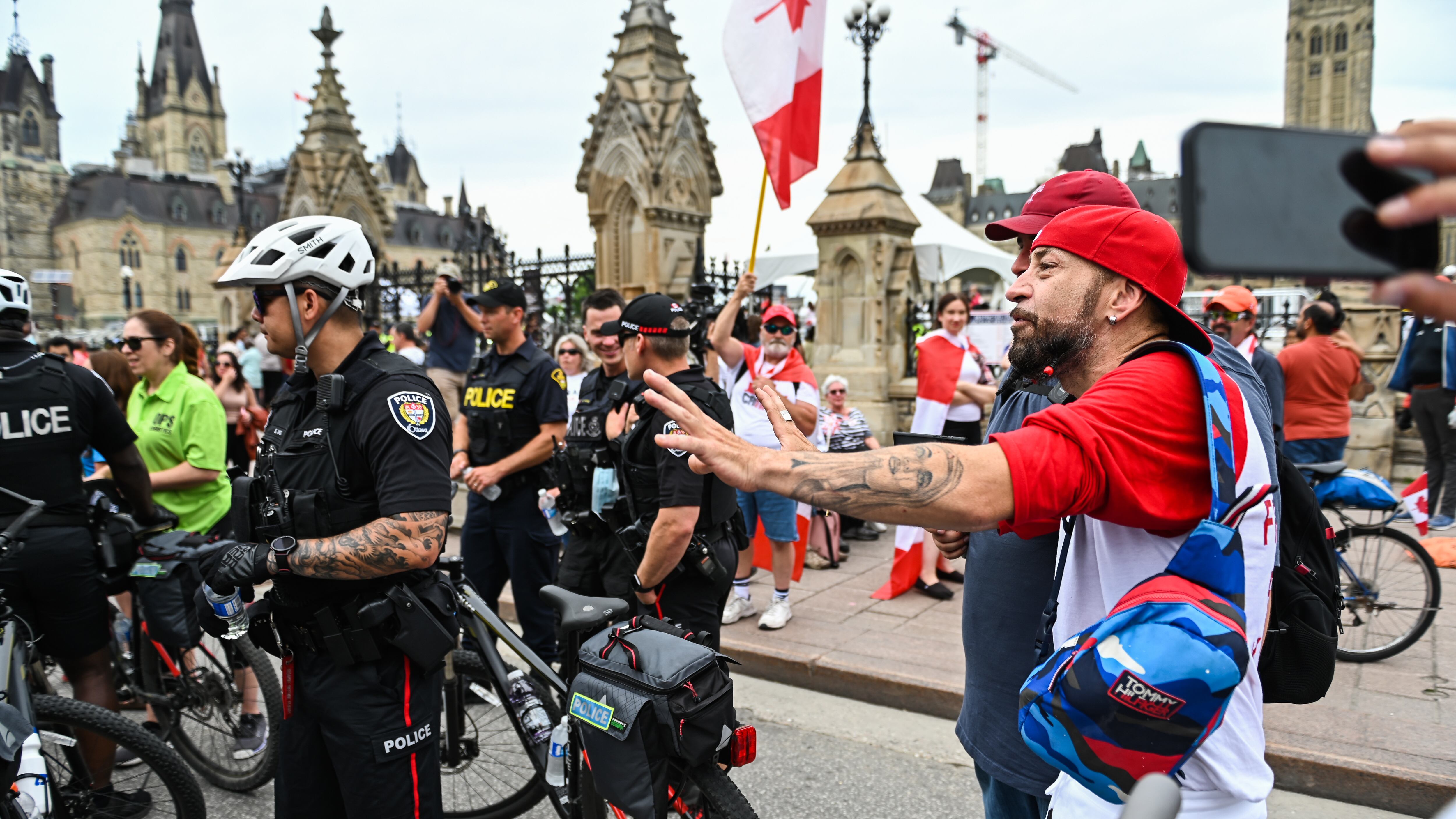 «Cette enquête mena à l’inculpation de trois personnes, a fait savoir le Service de police d'Ottawa. On compte, parmi les accusations portées, voies de fait contre un agent de la paix, résister à une arrestation, causer du désordre, et agression par étouffement.»