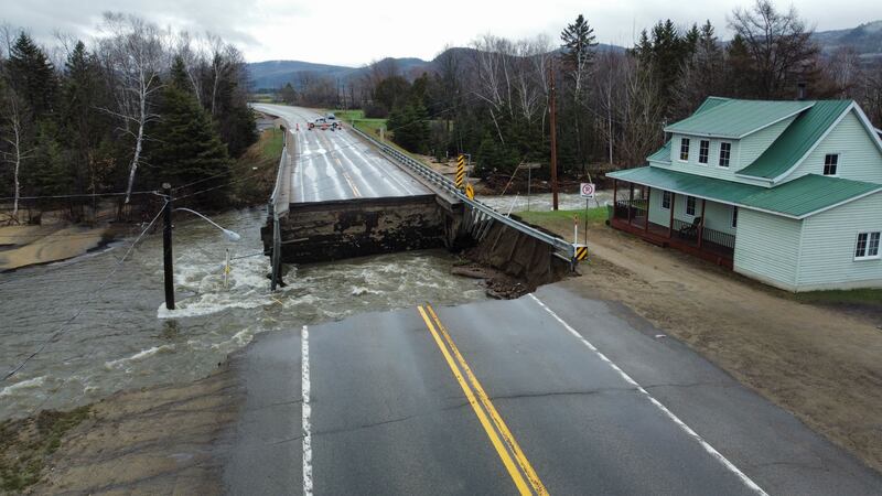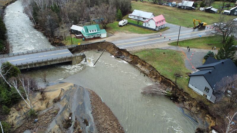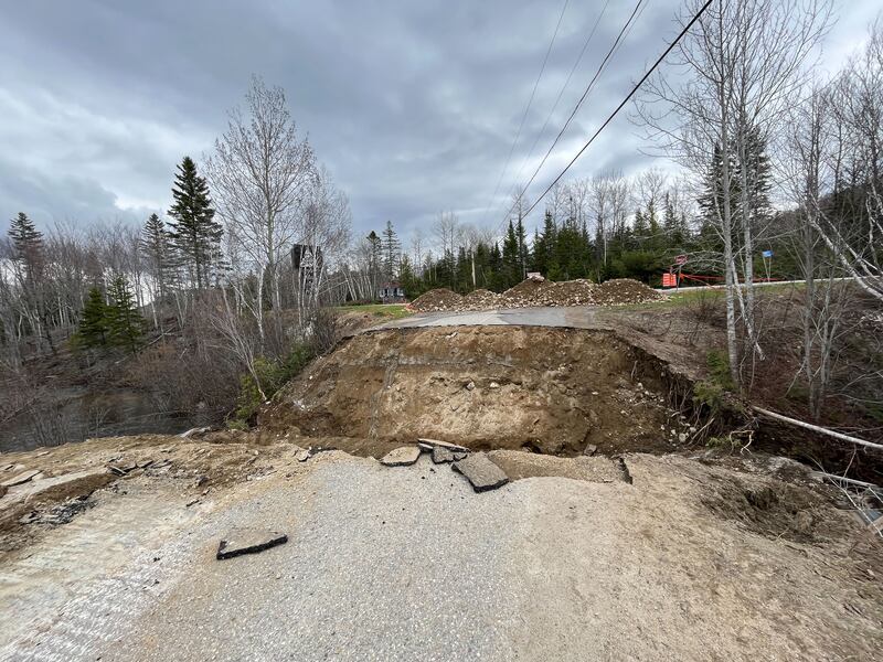 Une partie de la route s’est effondrée devant la station de ski Val Saint-Côme après les importantes précipitations des derniers jours. | Crédit / Noovo Info