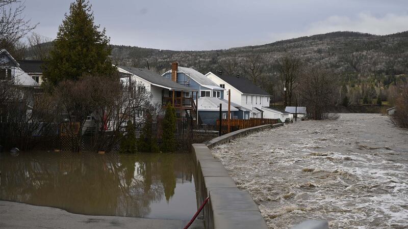 Des maisons sont inondées près de la rivière Bras-du-Nord le lundi 1er mai 2023 au centre-ville de Baie-Saint-Paul, Québec. | Crédit - Jacques Boissinot, la Presse canadienne