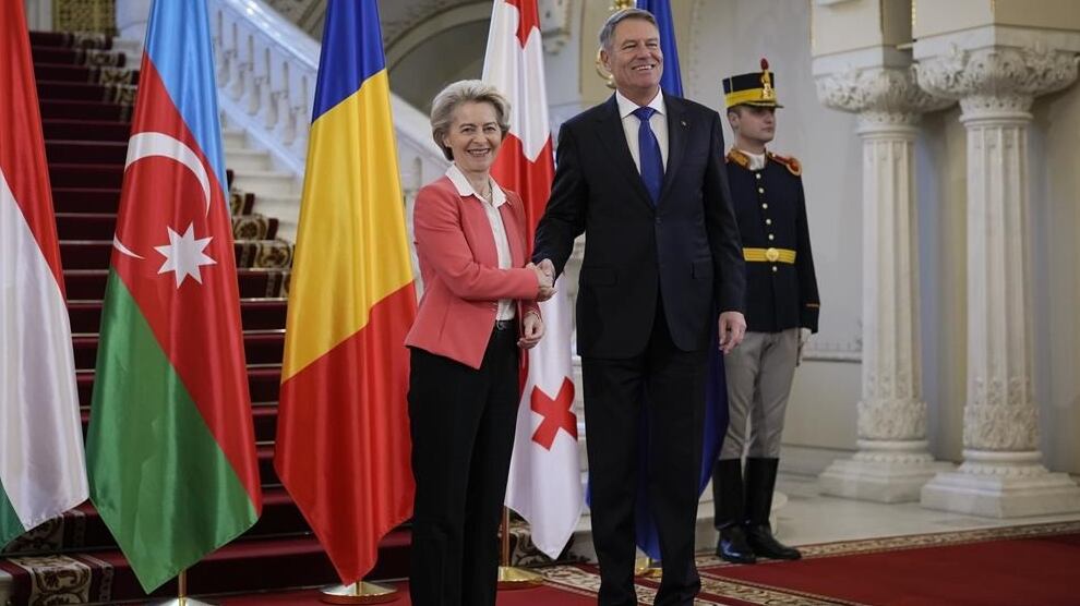 Le premier ministre hongrois Viktor Orban, le président roumain Iohannis, le premier ministre géorgien Irakli Garibashvili et le président azerbaïdjanais Ilham Aliyev ont assisté samedi à la cérémonie de signature à Bucarest aux côtés de la présidente de la Commission européenne Ursula von der Leyen.