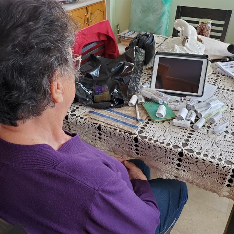 Photo: Marilyne à la maison avec les reçus de transferts bancaires. Crédit: Étienne Phénix/Noovo Info