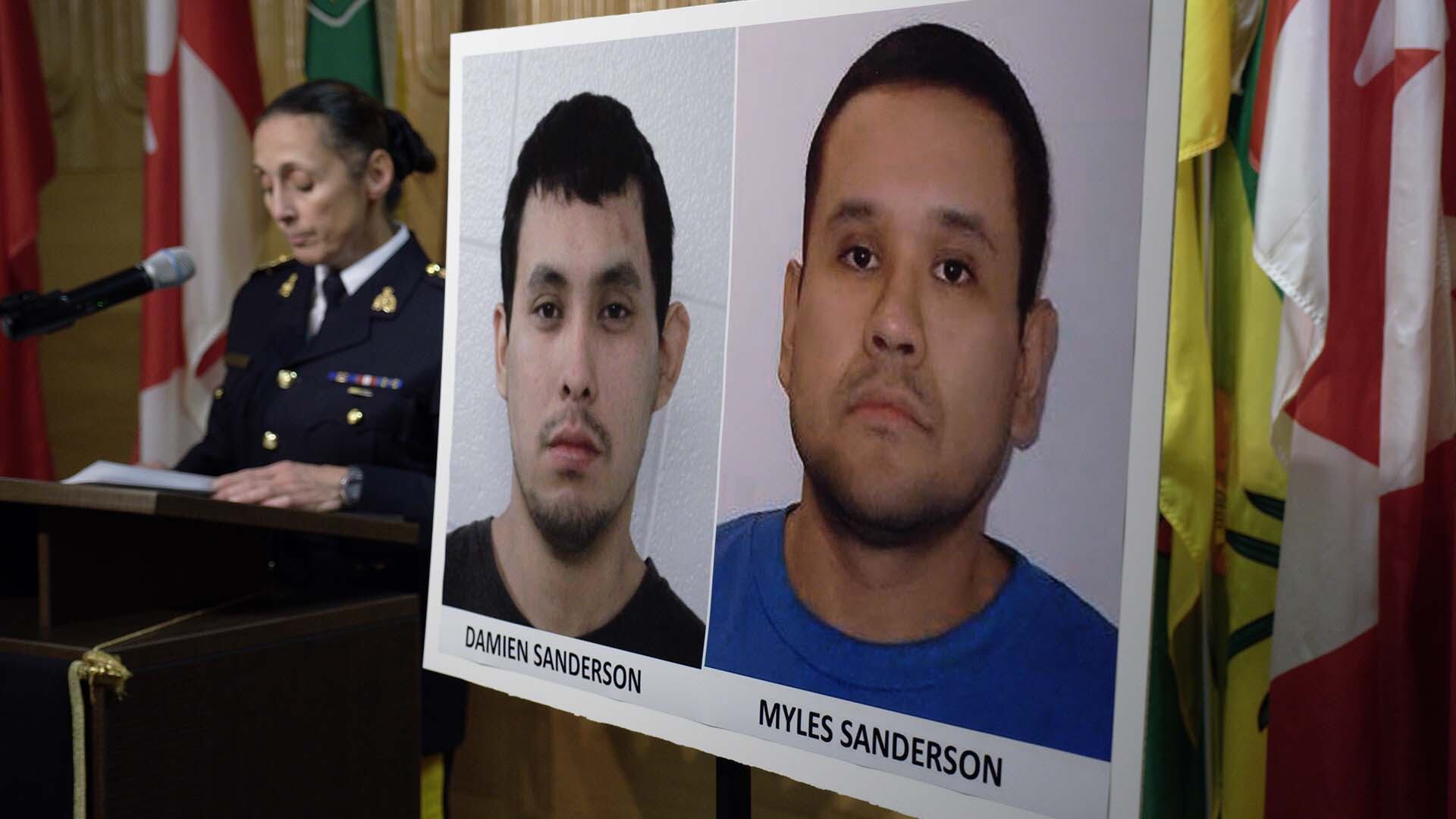 La GRC indique également que Myles Sanderson et Damien Sanderson avaient été visés par trois chefs d'accusation soit meurtre au premier degré, tentative de meurtre et pour s'être introduits par effraction dans une résidence. Un mandat d'arrêt a été émis par la GRC.