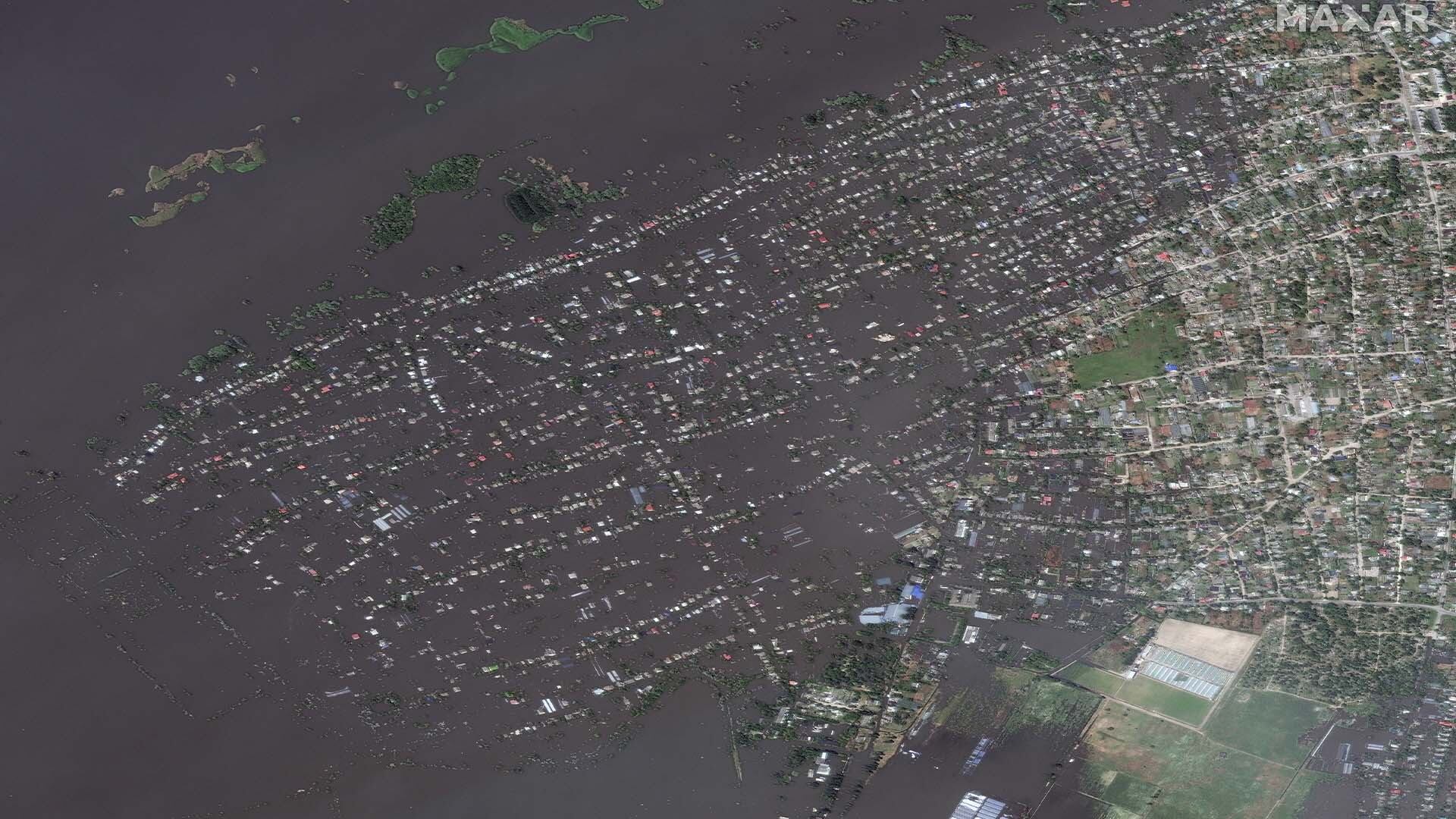 Des images exclusives du barrage ukrainien détruit et des villages environnants sous occupation russe montrent la structure en ruine tombant dans la rivière en crue et des centaines de maisons, de serres et même une église submergées ― sans aucun signe de vie.