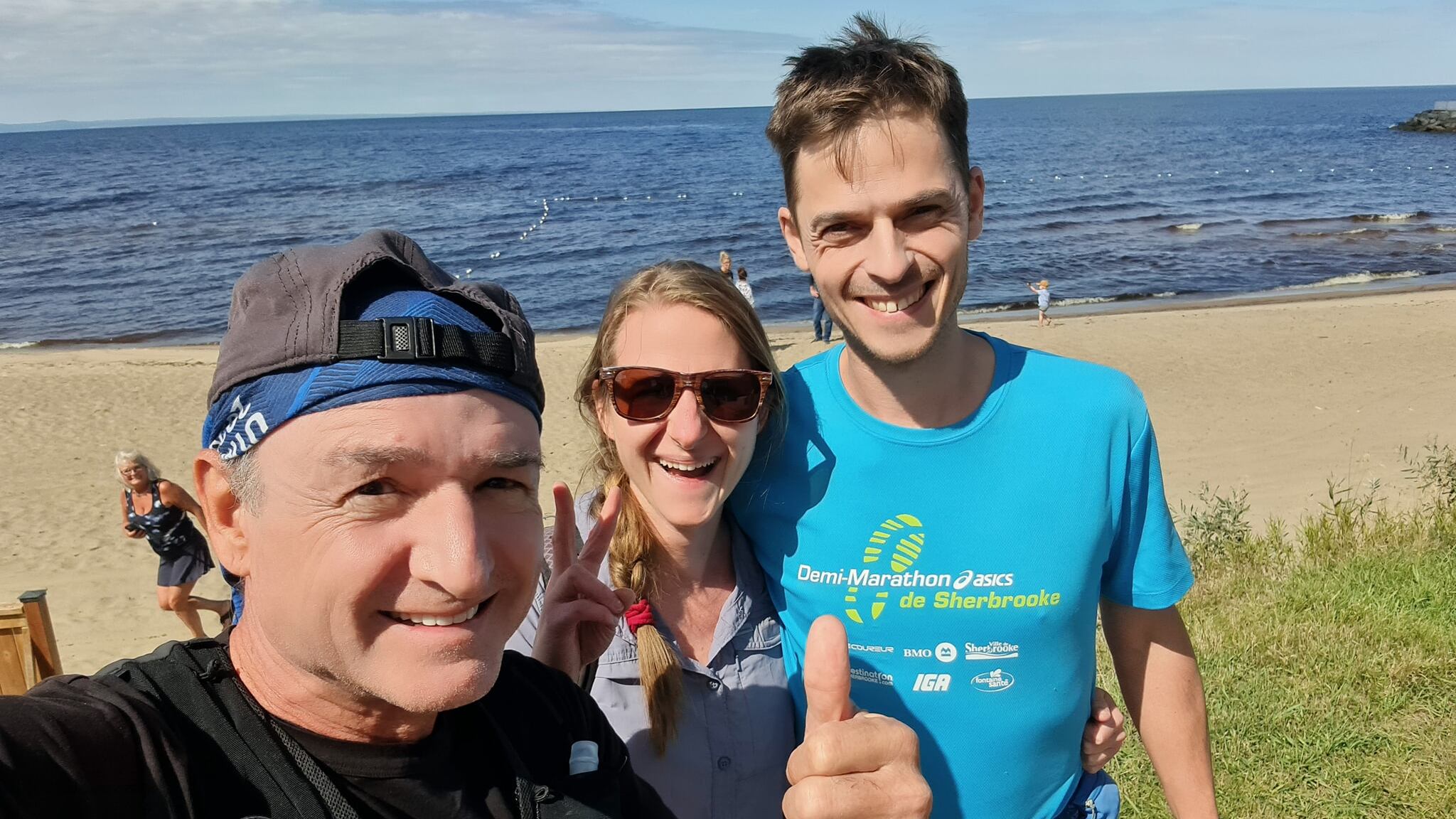 Il est parti de la plage municipale de Saint-Gédéon pour parcourir 42 km en une seule journée. Il se posera vendredi soir à Saint-Henri-de-Taillon, après être passé par Alma et avoir couru l'équivalent d'un marathon.