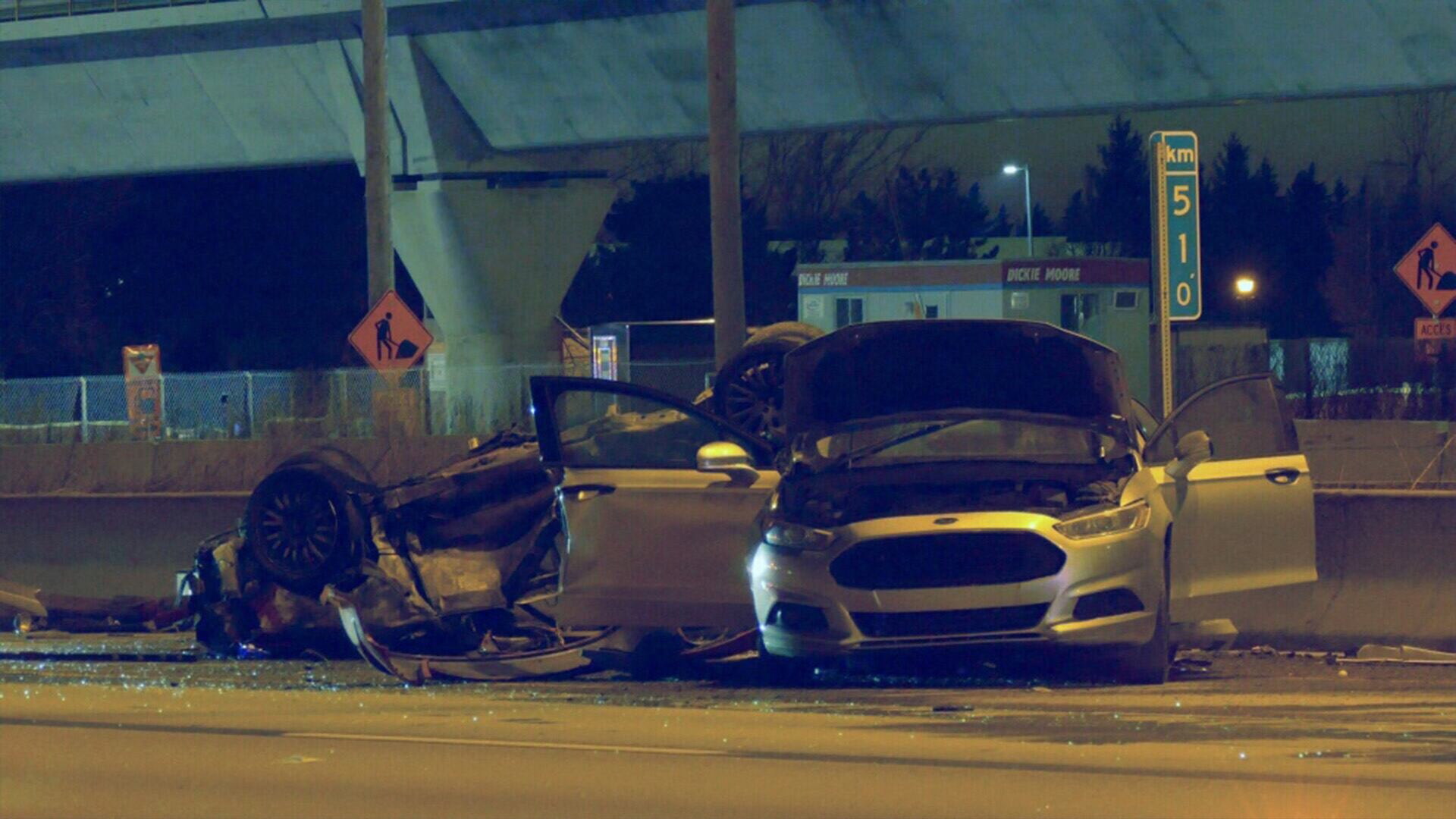 Mais un autre de ses compagnons avait eu un accident peu avant, près de la sortie St-Charles. Une deuxième voiture du groupe tente de porter assistance au conducteur, mais Lawrence perd le contrôle de son Audi A3 et percute les deux voitures arrêtées sur le bord de la route.