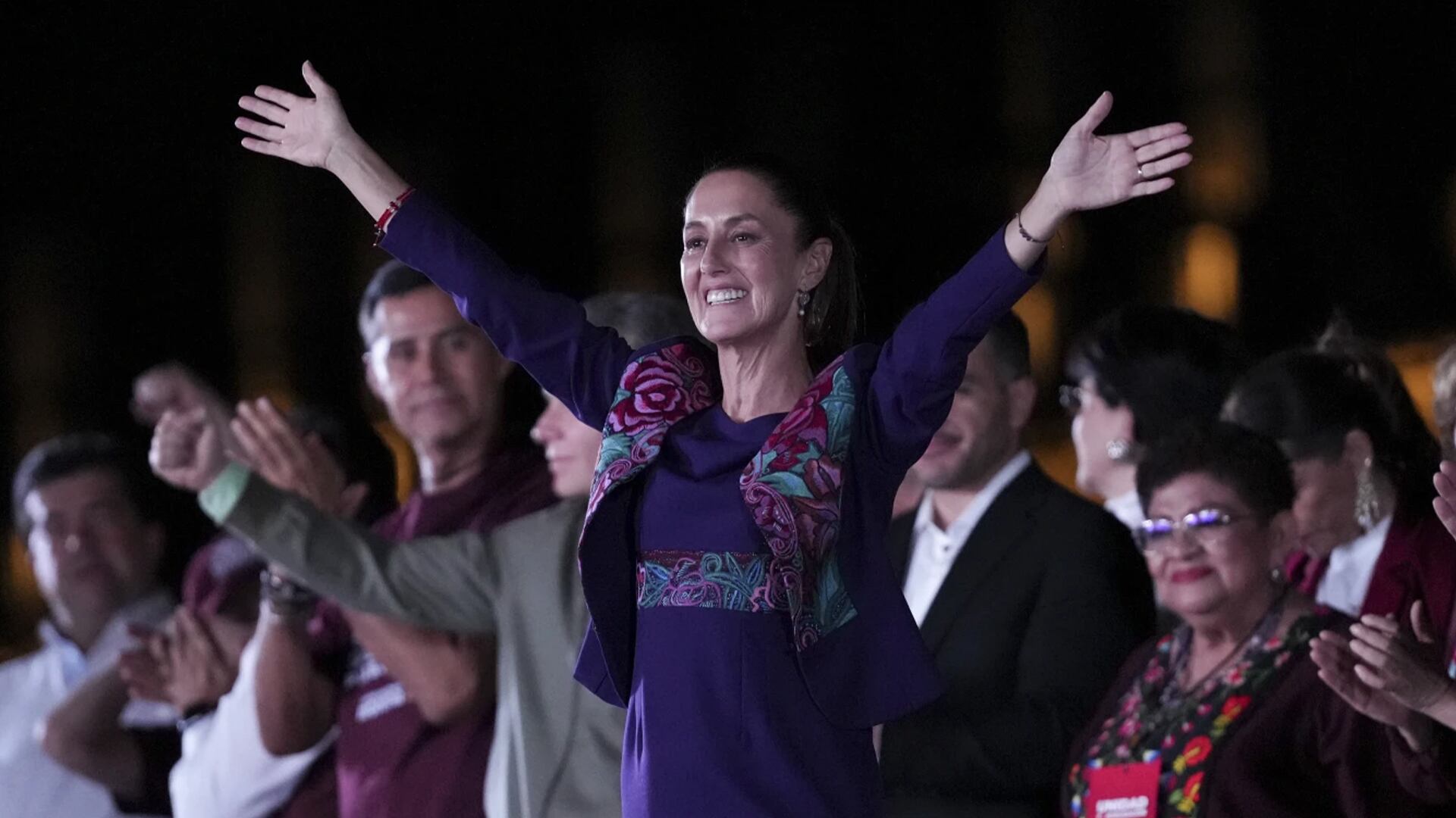 «Je n'y suis pas arrivée seule. Nous y sommes tous parvenus, avec nos héroïnes qui nous ont donné notre patrie, avec nos mères, nos filles et nos petites-filles. Nous avons démontré que le Mexique est un pays démocratique avec des élections pacifiques», a-t-elle lancé lors de son discours.