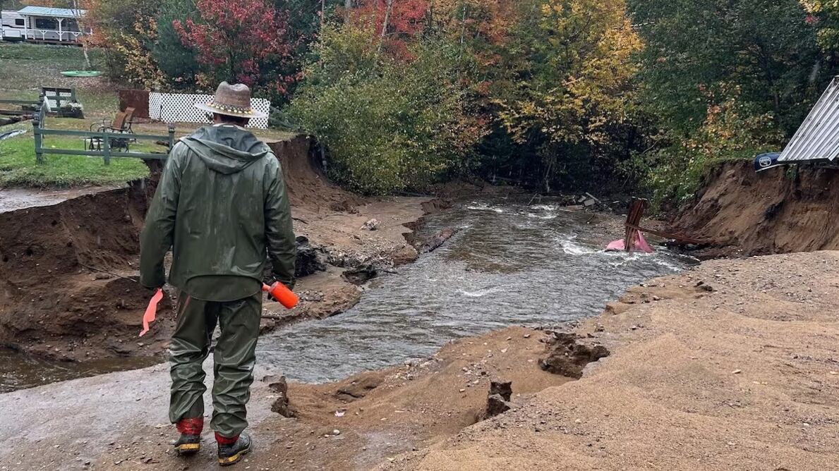 À Saint-Élie-de-Caxton, le camping Bivouak a aussi été victime de la météo. En plus d'infrastructures qui ont été lourdement endommagées, la plage est maintenant méconnaissable. L'accumulation d'eau a provoqué un effondrement de terrain, entraînant une grande partie du terrain. Le lac s'est aussitôt transformé en rivière, à la grande désolation des deux copropriétaires. Ceux-ci sont en mode solution pour réparer les dégâts, même si le travail s'annonce ardu.