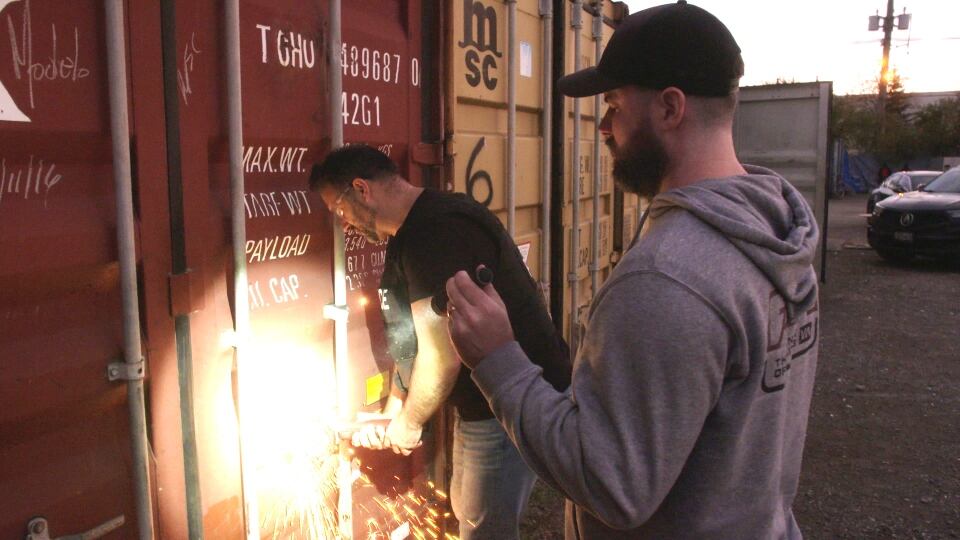Sous les yeux d'une équipe de W5, l'équipe s'est attaquée à une rangée de conteneurs d'expédition verrouillés, d'abord avec des coupe-boulons sur les cadenas, puis avec des meuleuses sur les serrures renforcées.
