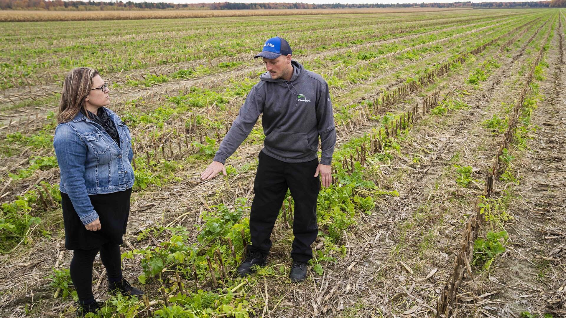 De nombreux éléments entrent en ligne de compte en matière de qualité du sol, a-t-il dit, y compris l'utilisation de «cultures de couverture», des plantes qui sont cultivées puis enfouies dans le sol au printemps comme «engrais vert» pour restituer la matière organique au sol.