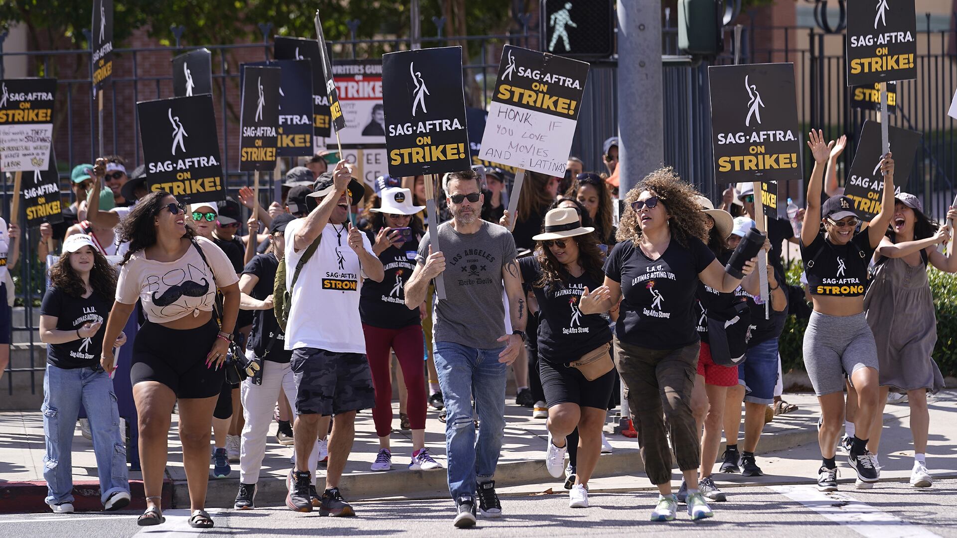 Les membres de deux syndicats — la Writers Guild of America (WGA) et la Screen Actors Guild-American Federation of Television and Radio Artists (SGA-AFTRA) — réclament notamment une meilleure rémunération et des protections contre l'utilisation de l'intelligence artificielle. La grève des scénaristes a commencé en mai et les acteurs les ont rejoints à la mi-juillet.