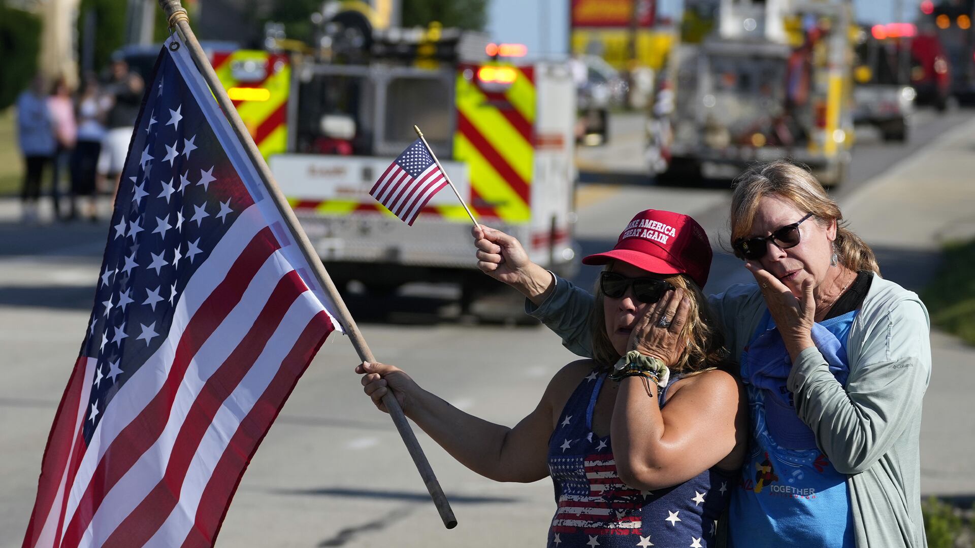 Des centaines de pompiers sont arrivés à l'église dans un cortège de plus de 100 camions pour montrer leur soutien aux parents et amis en deuil de M. Comperatore. À l’extérieur de l’église, un immense drapeau américain était accroché à l’échelle d’un camion de pompiers.