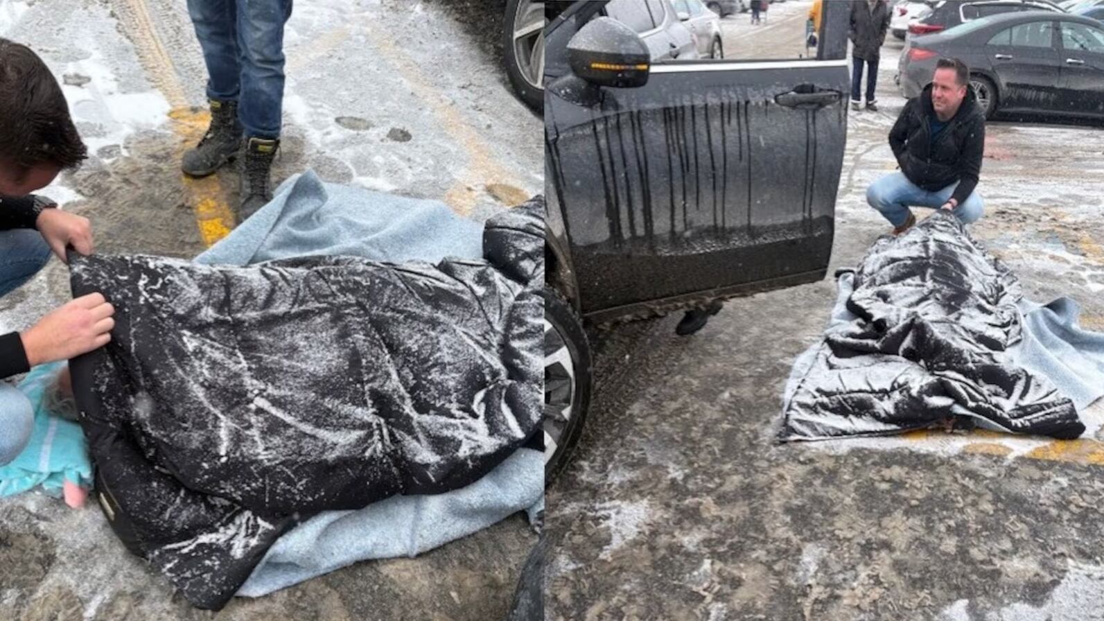 Le couple s'est précipité pour trouver leur matriarche effondrée, entourée de bons samaritains qui tentaient de la garder au chaud dans des températures inférieures à zéro.