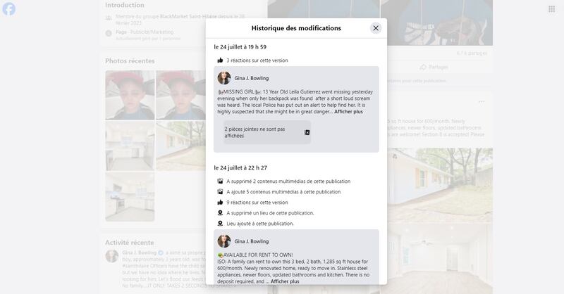 En regardant la publication faite sur l’un des groupes Facebook de Saint-Hilaire, on remarque que les publications faites par cette personne ont effectivement été modifiées pour promouvoir une offre immobilière.