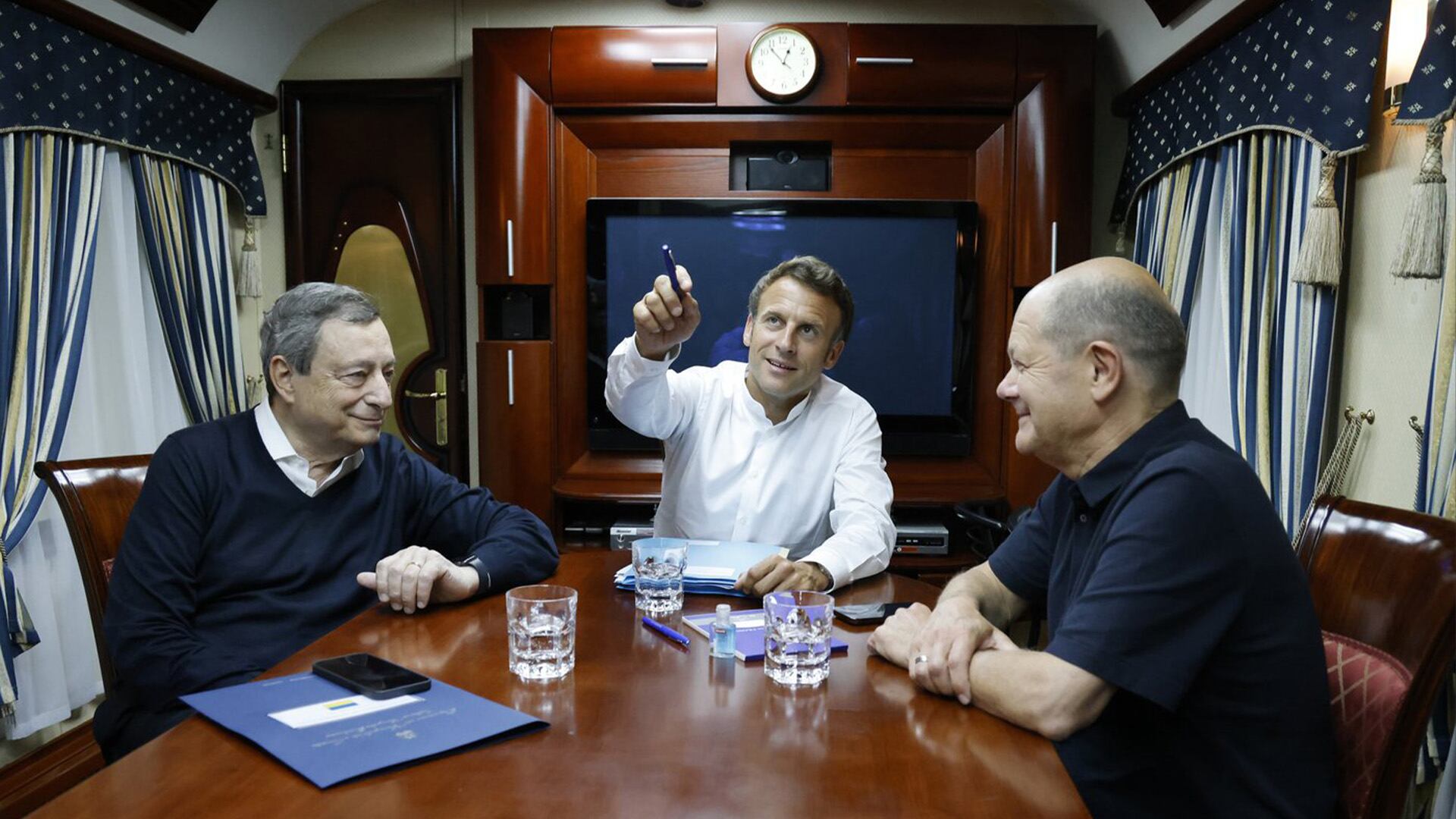 Le cabinet du président français a fait savoir qu'Emmanuel Macron, le chancelier allemand Olaf Scholz et le premier ministre italien Mario Draghi sont les représentants des trois plus importantes économies d'Europe et qu'ils avaient décidé de voyager ensemble à bord d'un train de nuit mis à leur disposition par les autorités ukrainiennes.