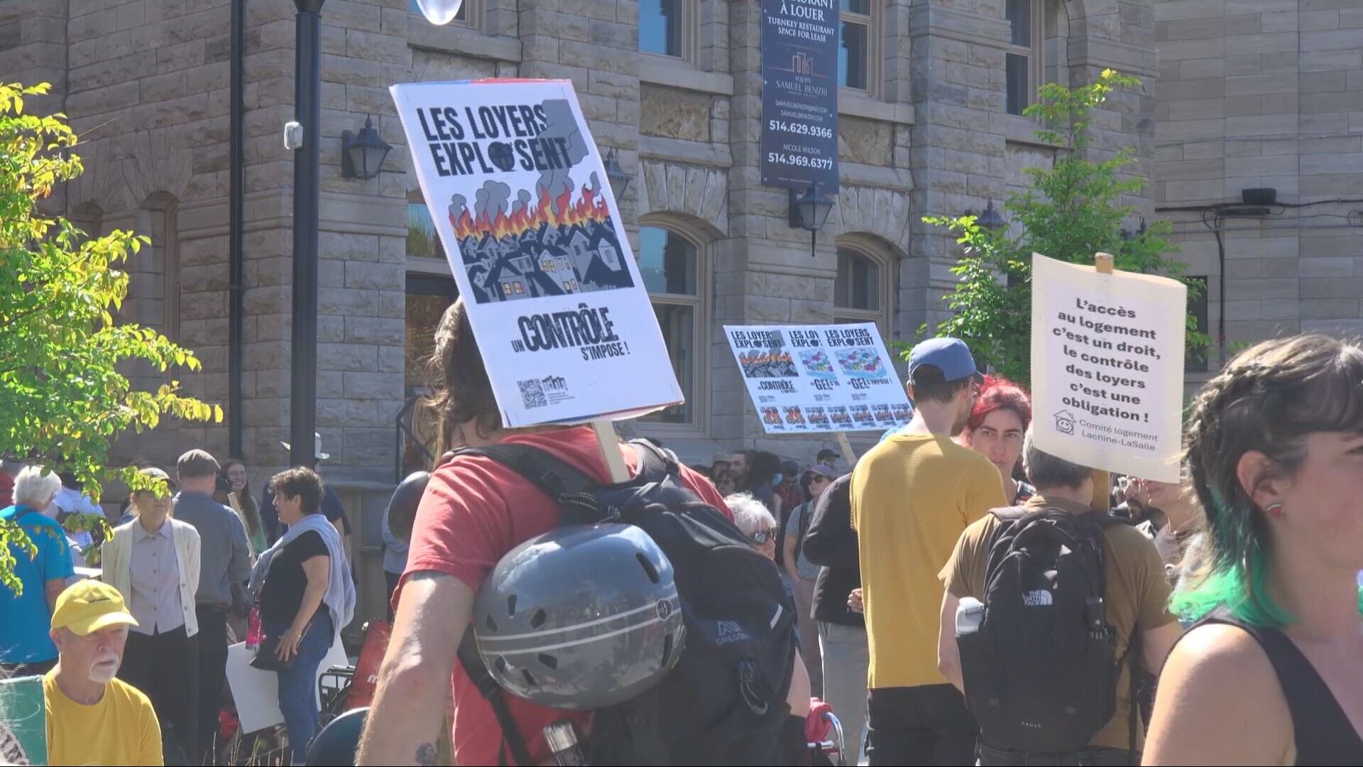 Des manifestants se sont réunis samedi dans les rues de quatre municipalités du Québec pour dénoncer la crise du logement et le prix élevé des loyers qui touchent l'ensemble de la province.