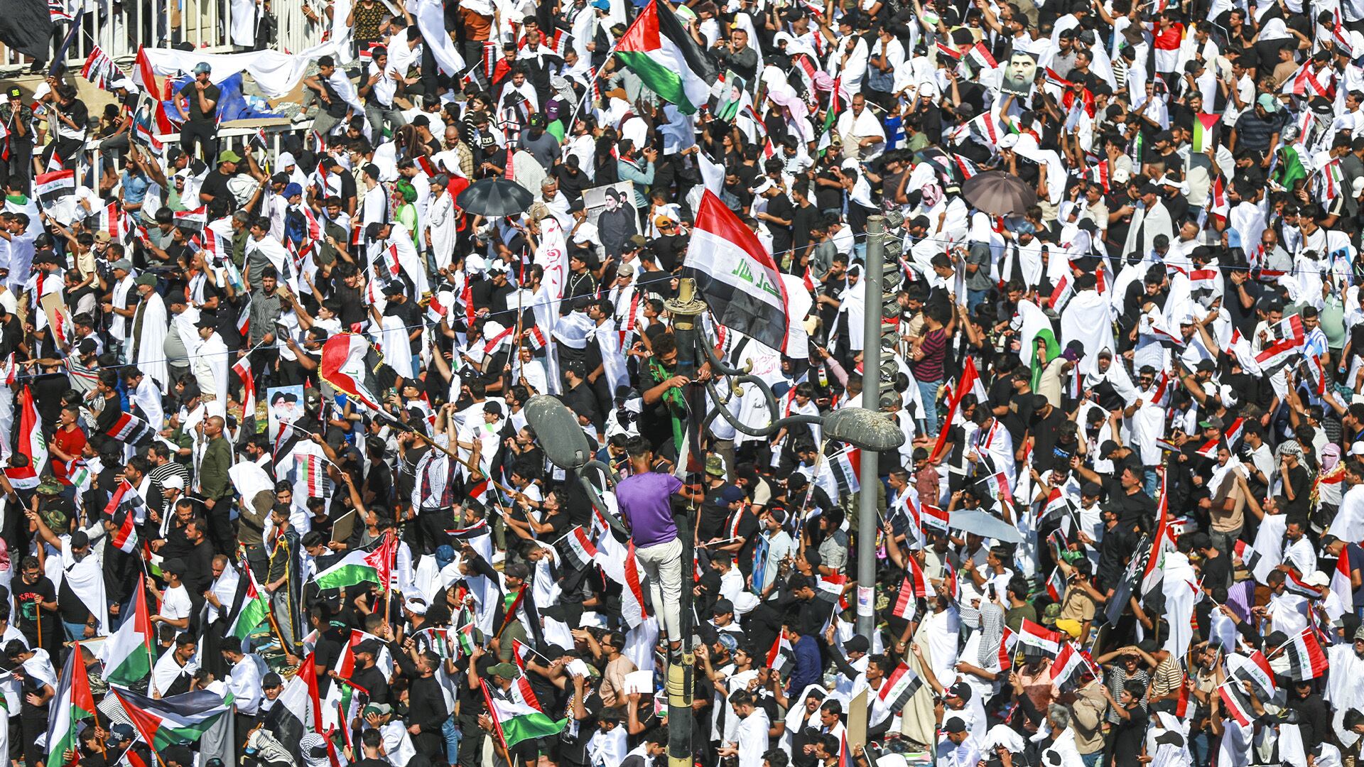 À Bagdad, des dizaines de milliers de manifestants se sont rassemblés sur la place Tahrir, au centre de la capitale irakienne, à l'occasion de rassemblements organisés par l'influent religieux chiite et leader politique Muqtada al-Sadr.