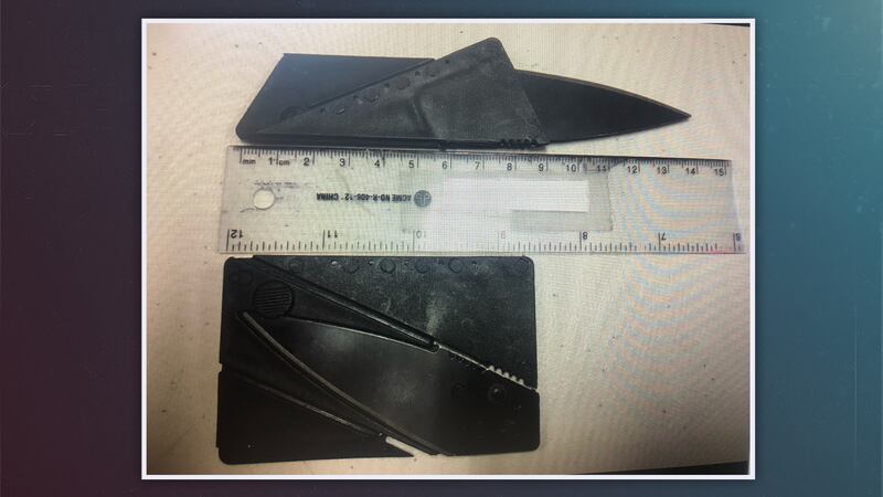 Photo: Ce couteau, mince comme une carte de crédit, faisait partie d'une saisie dans une école. Crédit: Police de Deux-Montagnes