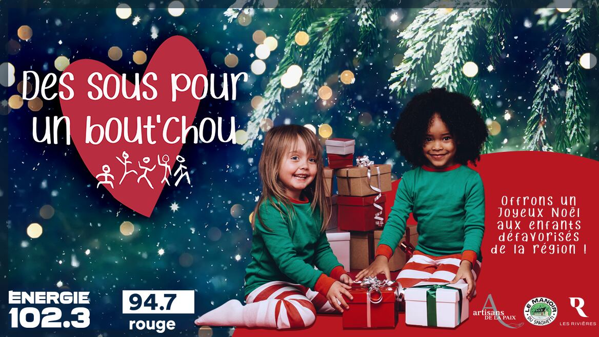Encore une fois cette année, Énergie 102.3 et Rouge 94.7 vous invitent à acheter vos soupers pour emporter du Manoir du Spaghetti, afin de d’offrir un beau Noël aux enfants des familles démunies de la région.