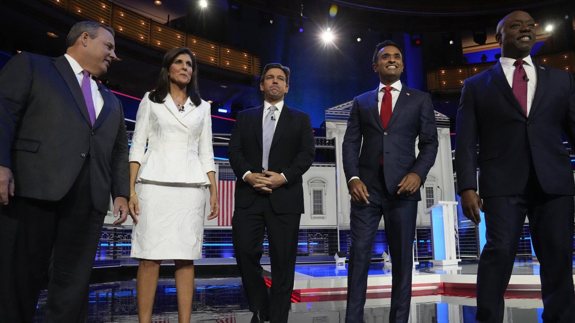 Le sénateur de Caroline du Sud Tim Scott, l'ancien gouverneur du New Jersey Chris Christie et l'entrepreneur en biotechnologie Vivek Ramaswamy étaient également présents sur scène mercredi.