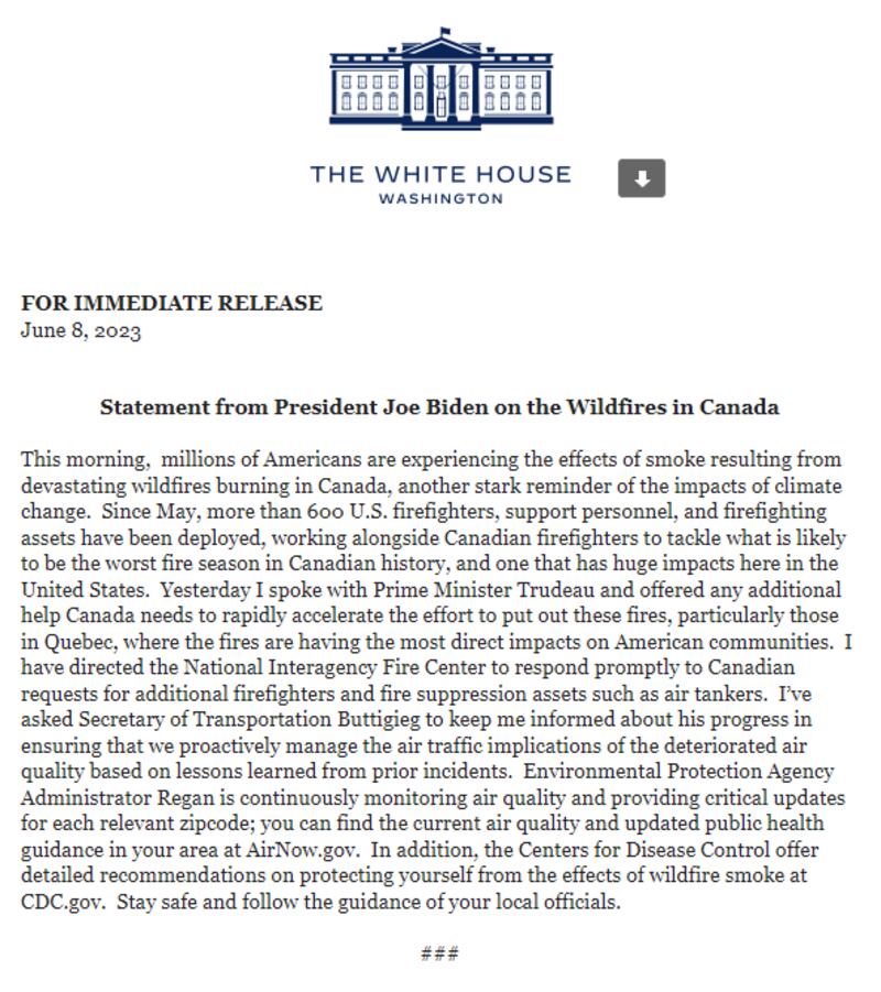 14h22 | Des pompiers américains débarqueront bientôt au Québec, confirme le président Biden.