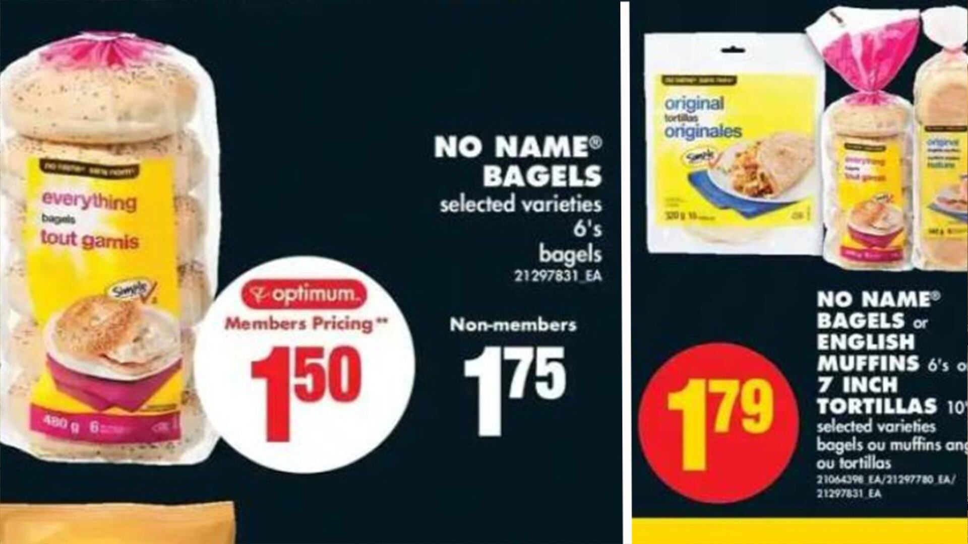 Les chasseurs de bonnes affaires ont également remarqué que les prix des produits Sans Nom varient en fonction des magasins. Par exemple, un sac de six baguels Sans Nom chez No Frills coûte 1,79 $ cette semaine, tandis que le même sac coûte 2,79 $ chez Loblaws ou 2,50 $ si un acheteur en achète deux ou plus.