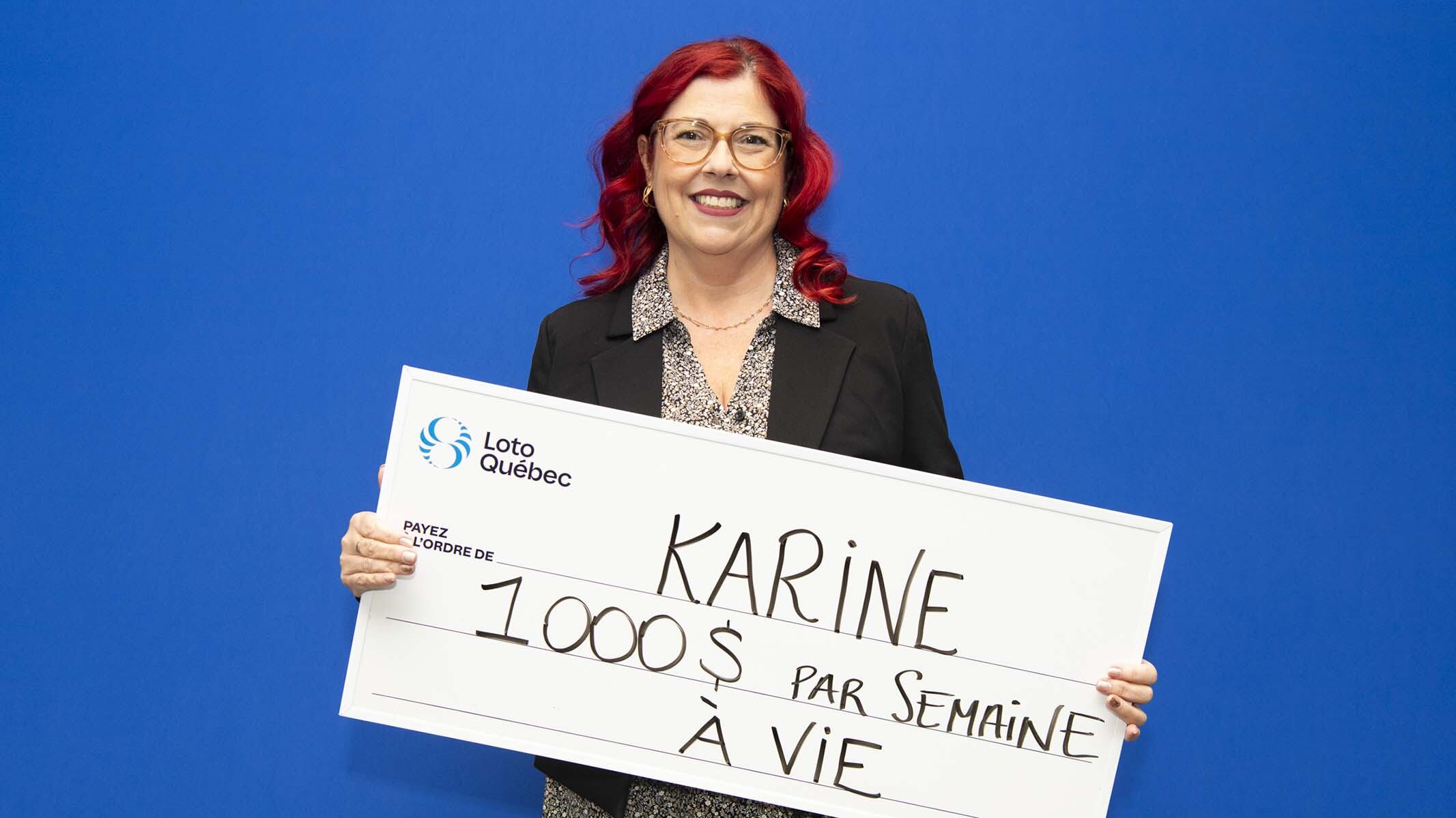 Une femme de la Montérégie, Karine Dagenais, vient de remporter un gros lot de 1000$ par semaine à vie à la loterie Gagnant à vie, et ce, grâce à ténacité.