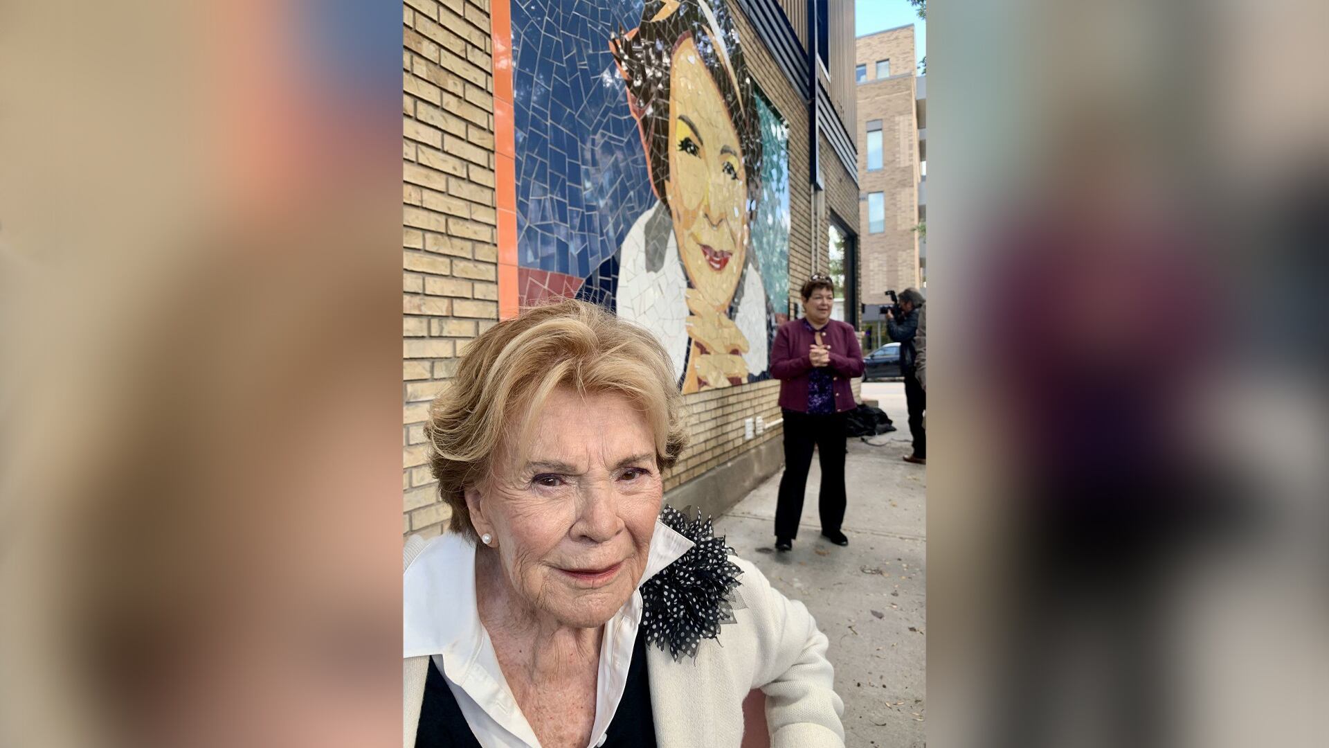 Puis, observant sa murale, elle a dit que «c'est difficile pour moi de me regarder. Vous êtes-vous déjà regardés dans une photo? On n’est jamais belle. Mais je vais me regarder de loin tout à l'heure en partant et je pense que je vais me trouver belle», une affirmation que personne ne pourrait contredire.