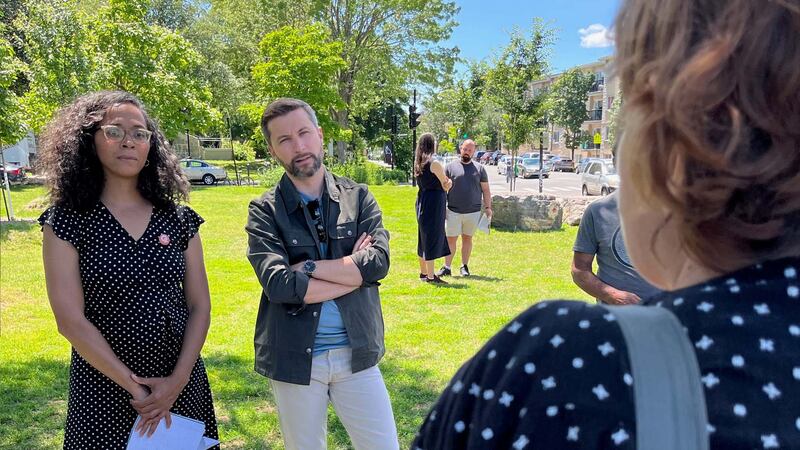 Le porte-parole de Québec solidaire (QS), Gabriel Nadeau-Dubois, a rencontré des citoyens dans l'arrondissement Saint-Michel, dimanche, pour parler de la crise du logement à Montréal.