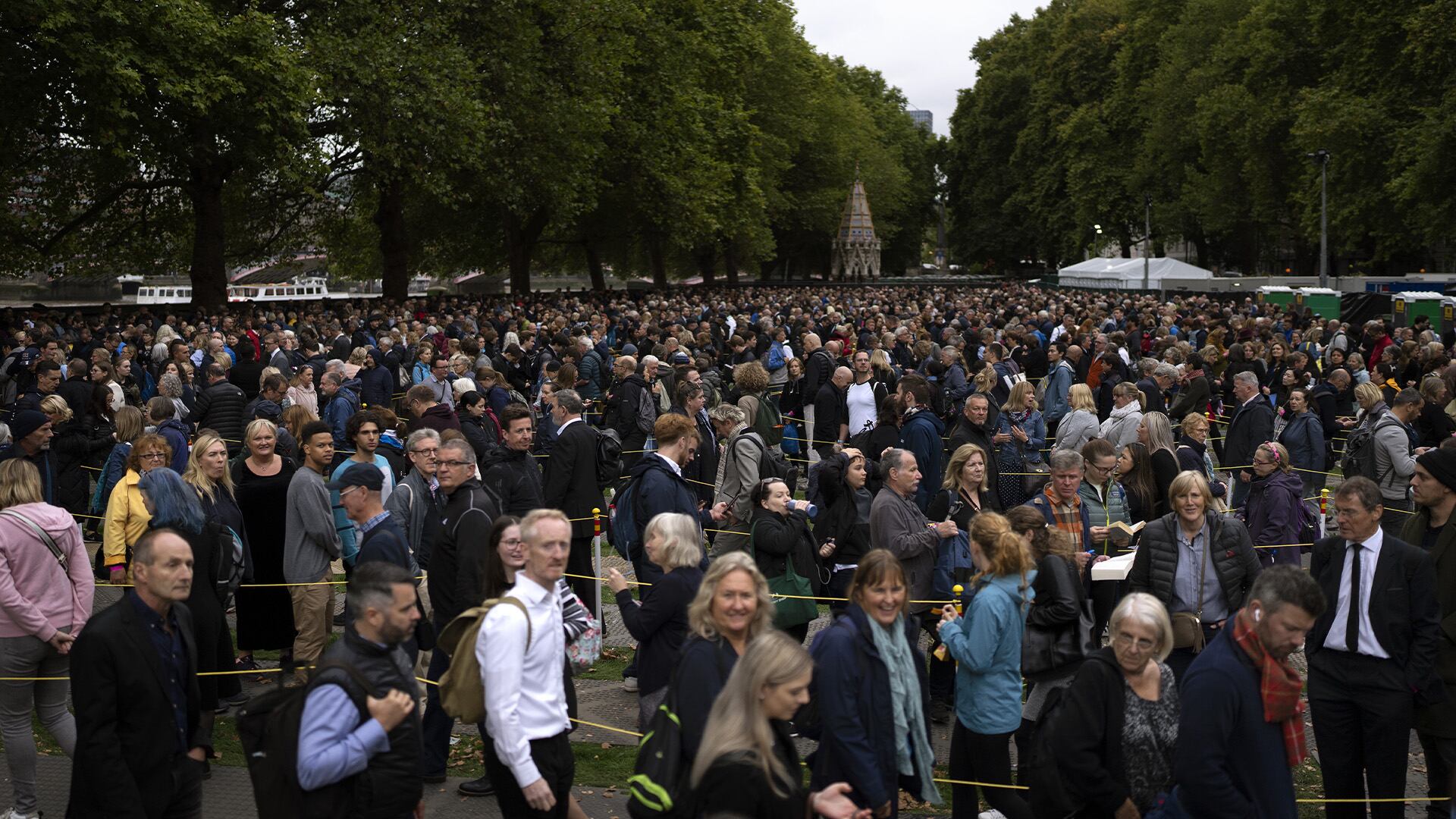 La file d’attente pour voir le cercueil s’étendait sur 4,2 kilomètres jeudi matin, le long de la rive sud de la Tamise, puis sur un pont menant au Parlement. Des milliers de personnes dans la file ne se souciaient pas des heures d’attente.
