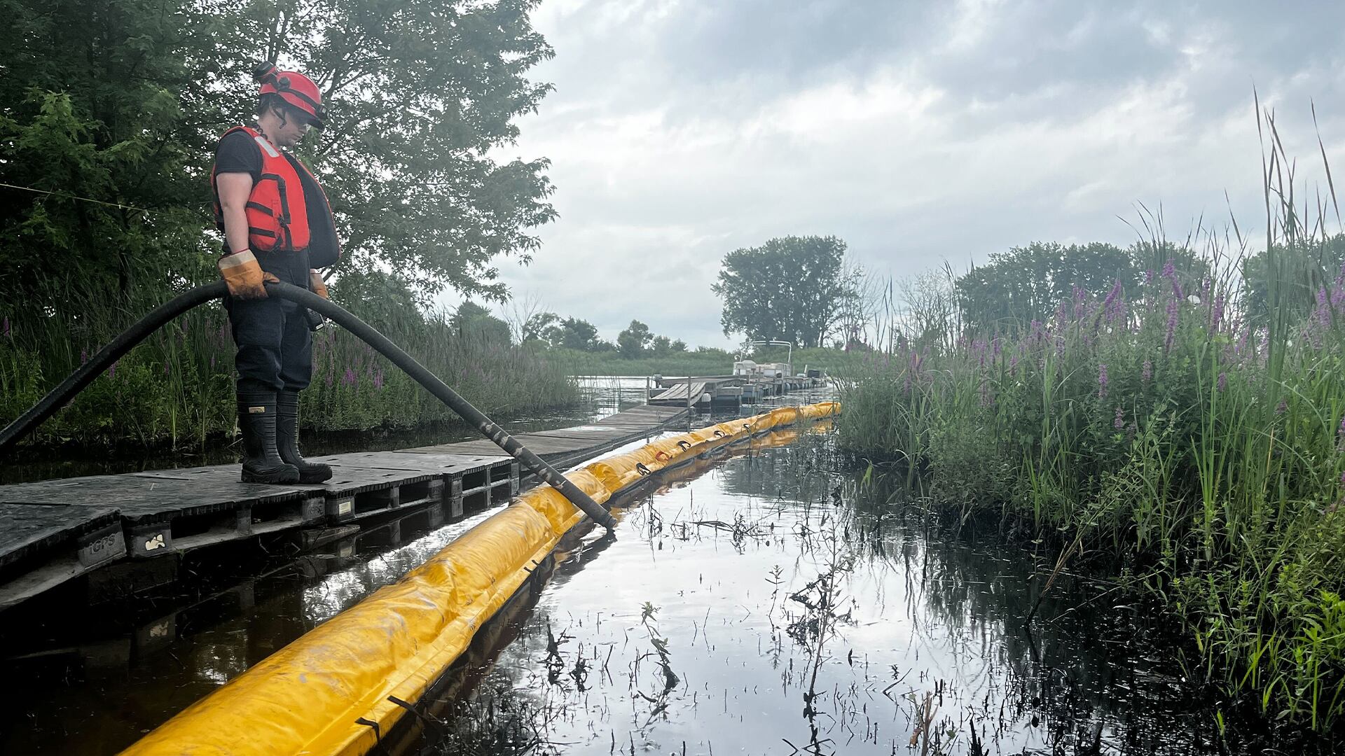 Les gardes-côtes ont été informés jeudi du déversement de polluants, qui mesurait environ 875 m de long et que le département de l'environnement de la province a ensuite identifié comme étant de l'huile de moteur usagée.