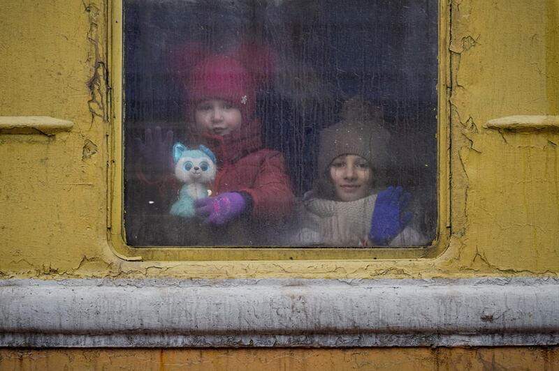 Des enfants jettent un regard vers leurs proches alors qu'ils doivent partir de l'Ukraine pour trouver refuge ailleurs | Crédit photo - Vadim Ghirda