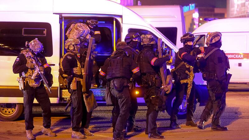 Des vidéos mises en ligne montrent des hommes armés tirant à bout portant sur des civils dans la salle de spectacle. Le toit du théâtre, où la foule s'était rassemblée vendredi pour assister à un concert du groupe de rock russe Picnic, s'est effondré aux premières heures de la matinée de samedi, alors que les pompiers passaient des heures à lutter contre un incendie qui s'était déclaré pendant l'attaque.