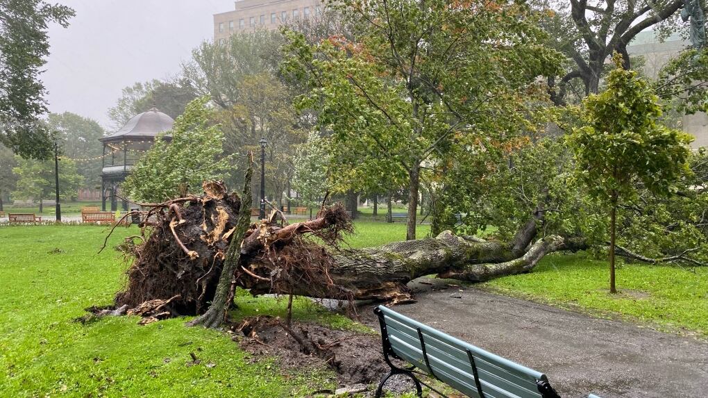 La tempête post-tropicale Lee a inondé les routes, renversé des arbres et détruit des lignes électriques dans certaines parties des Maritimes samedi alors qu'elle balayait la pointe ouest de la Nouvelle-Écosse et se dirigeait vers le Nouveau-Brunswick.