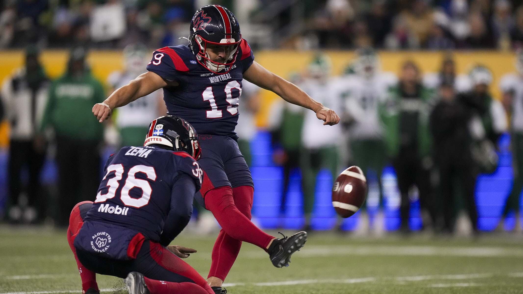 Le Mexicain de 34 ans a participé à toutes les rencontres des Alouettes cette saison, élevant le record pour le plus de placements réussis en une campagne chez les Moineaux à 58. La précédente marque appartenait à David Duval (55).