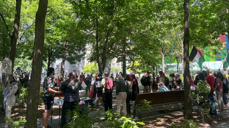 Organisée par le Collectif Désinvestir pour la Palestine, une manifestation s'est déroulée mercredi devant les bureaux de la Caisse de dépôt et placement du Québec (CDPQ) en lien avec les demandes du campement propalestinien au square Victoria, installé depuis la fin juin.