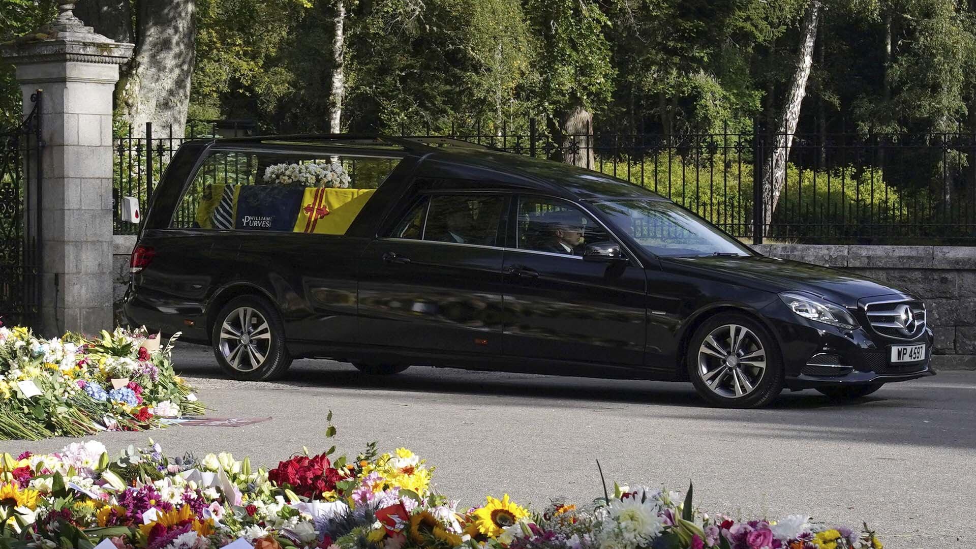 Le corbillard transportant le cercueil en chêne de la souveraine est passé devant des centaines de personnes et des montagnes de fleurs laissées en hommages au passage du cortège de sept voitures qui a quitté le château de Balmoral, la résidence d'été de la reine. Il a entamé un voyage de six heures à travers les villes écossaises jusqu'au palais de Holyrood à Édimbourg.