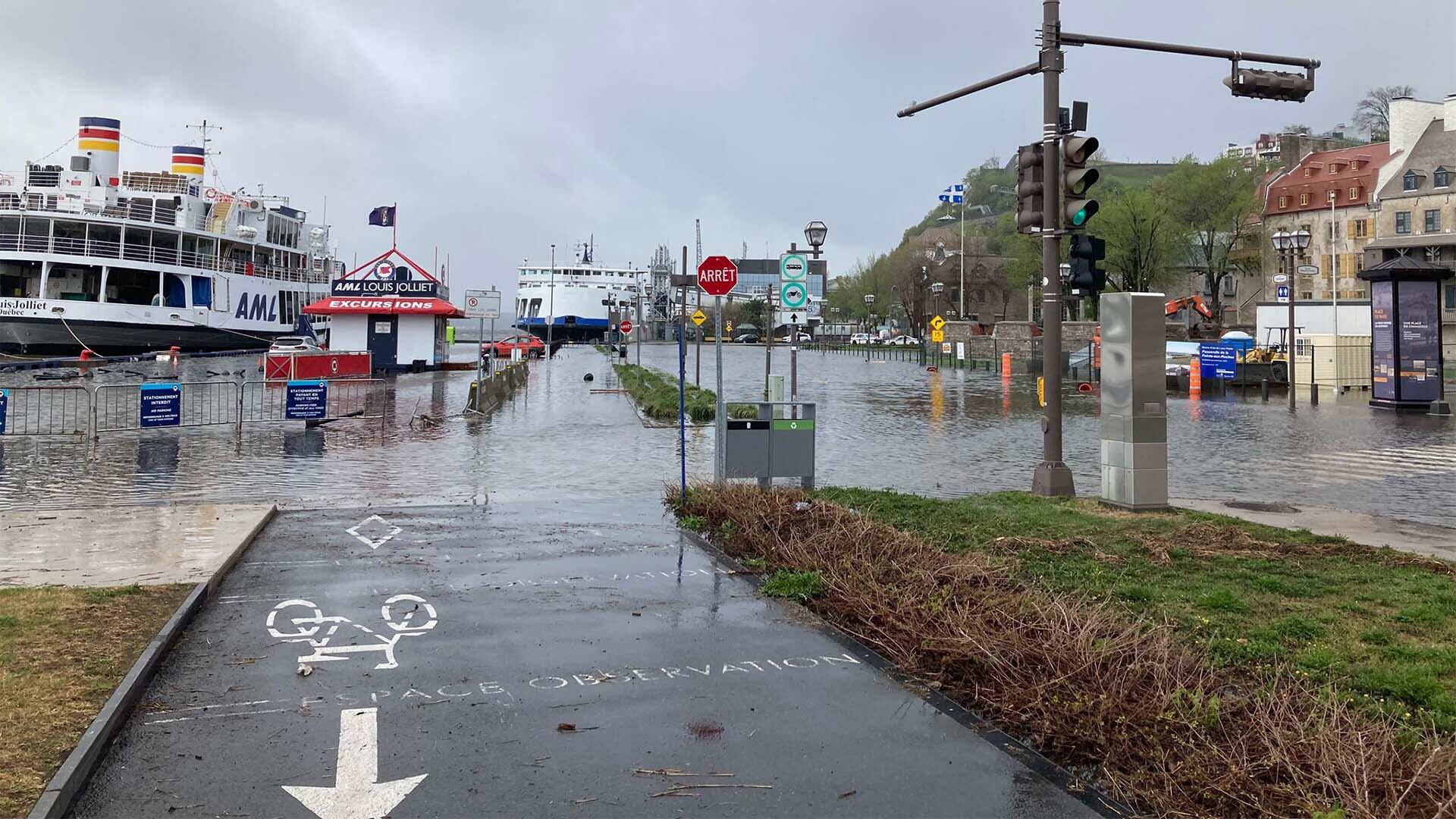 Le terrain de la Gare fluviale de Québec a été inondé, comme l’ont montré peu après 8h00 des images de télévision du Réseau de l’Information (RDI).