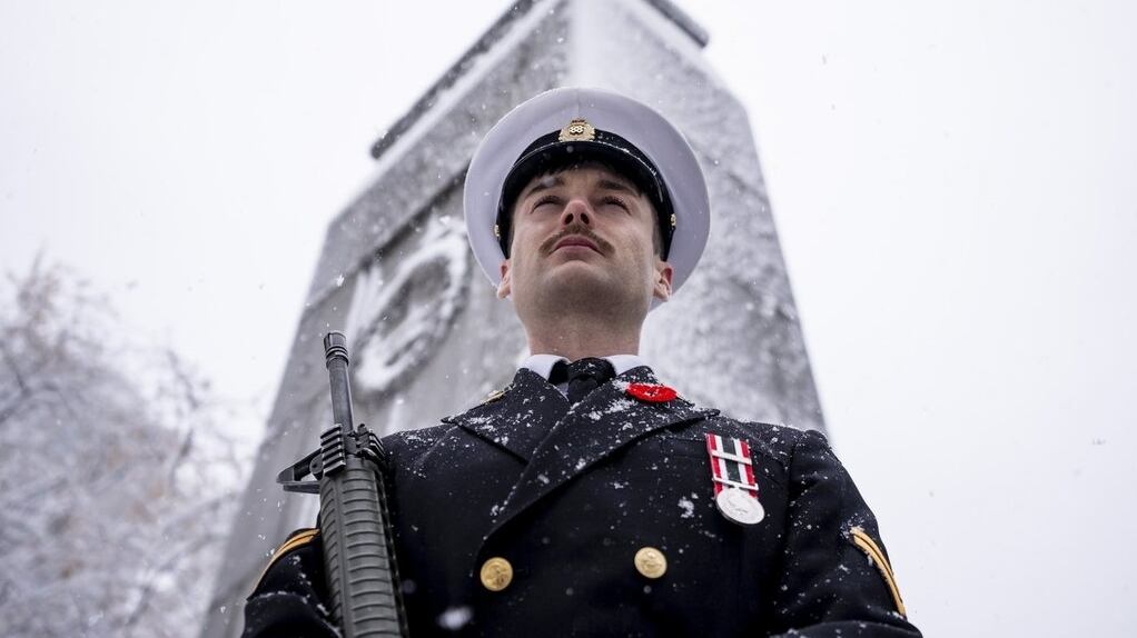 Sous une épaisse couche de neige, la première de la saison, la cérémonie du jour du Souvenir à Montréal a débuté peu après 10 h 30.