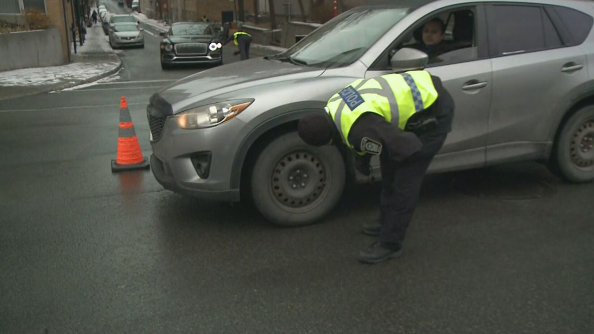 Des agents du Service de police de la Ville de Montréal (SPVM) ont arrêté des conducteurs et vérifié leurs pneus pour s'assurer qu'ils étaient prêts pour l'hiver.
