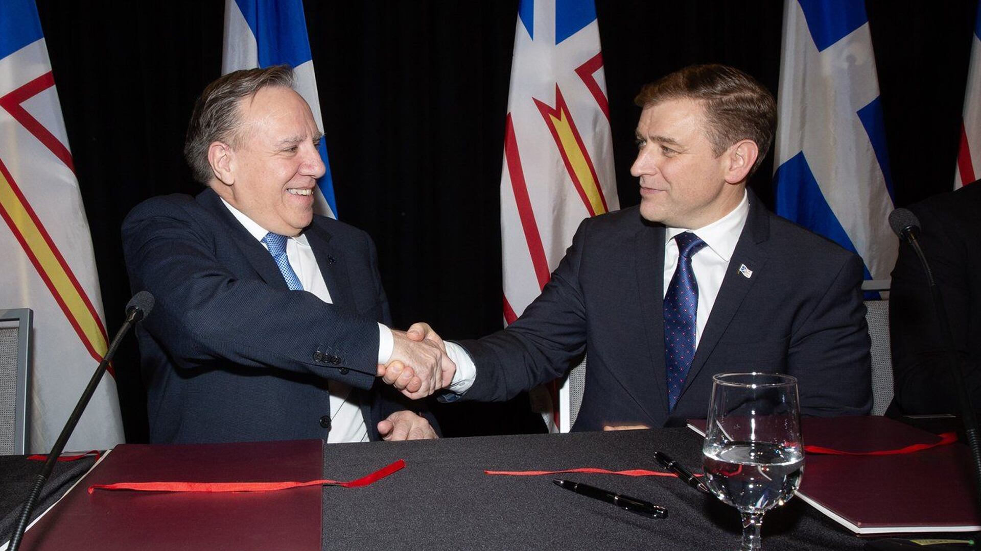 L'entente a été annoncée le 12 décembre en grande pompe lors d'une conférence de presse des premiers ministres Furey et François Legault. Le Terre-Neuvien était fier comme un paon, devant la foule de libéraux provinciaux qui l'applaudissaient.