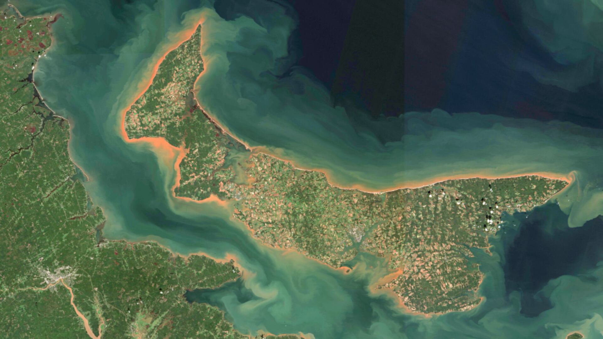L’Agence spatiale canadienne a rapporté les images satellites de l’Île-du-Prince-Édouard et du détroit de Northumberland prises le 21 août et le 25 septembre 2022.