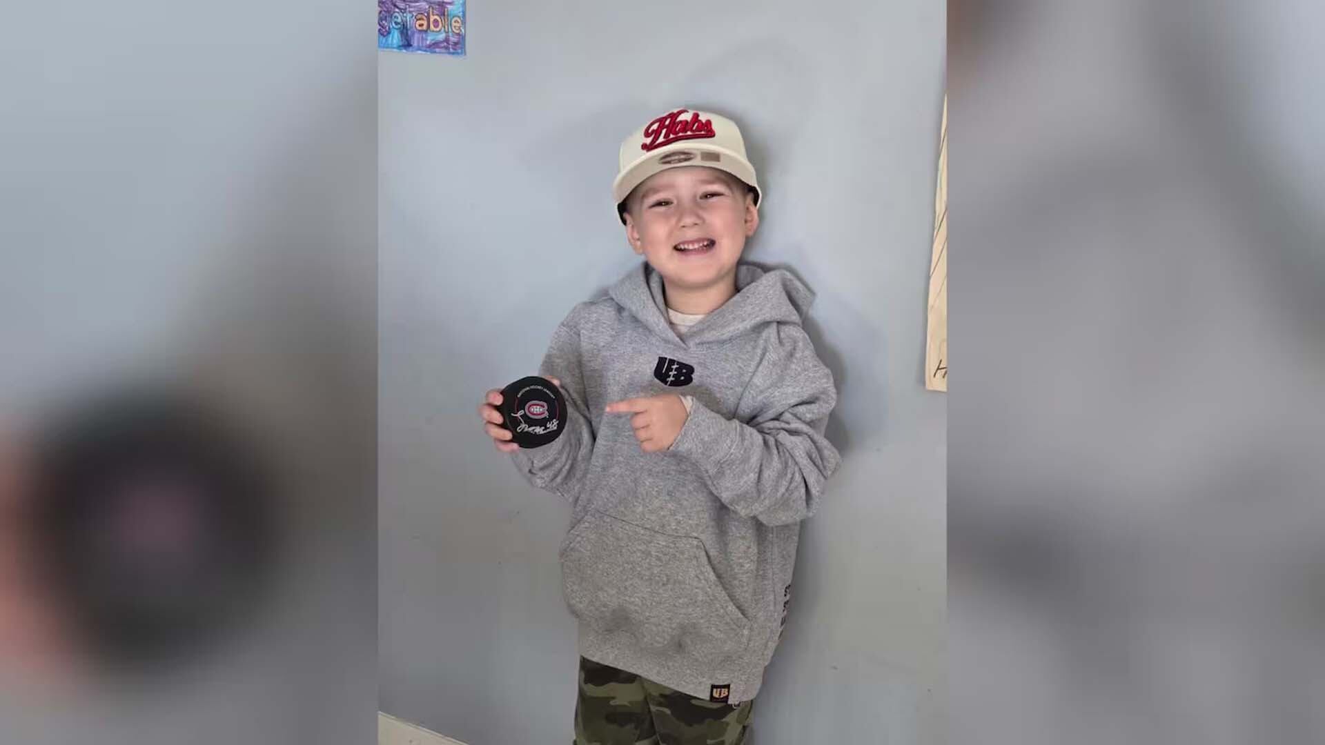 H.R. Kelly a été surpris en recevant des cadeaux des Canadiens et une rondelle signée par son joueur préféré, Lane Hutson.