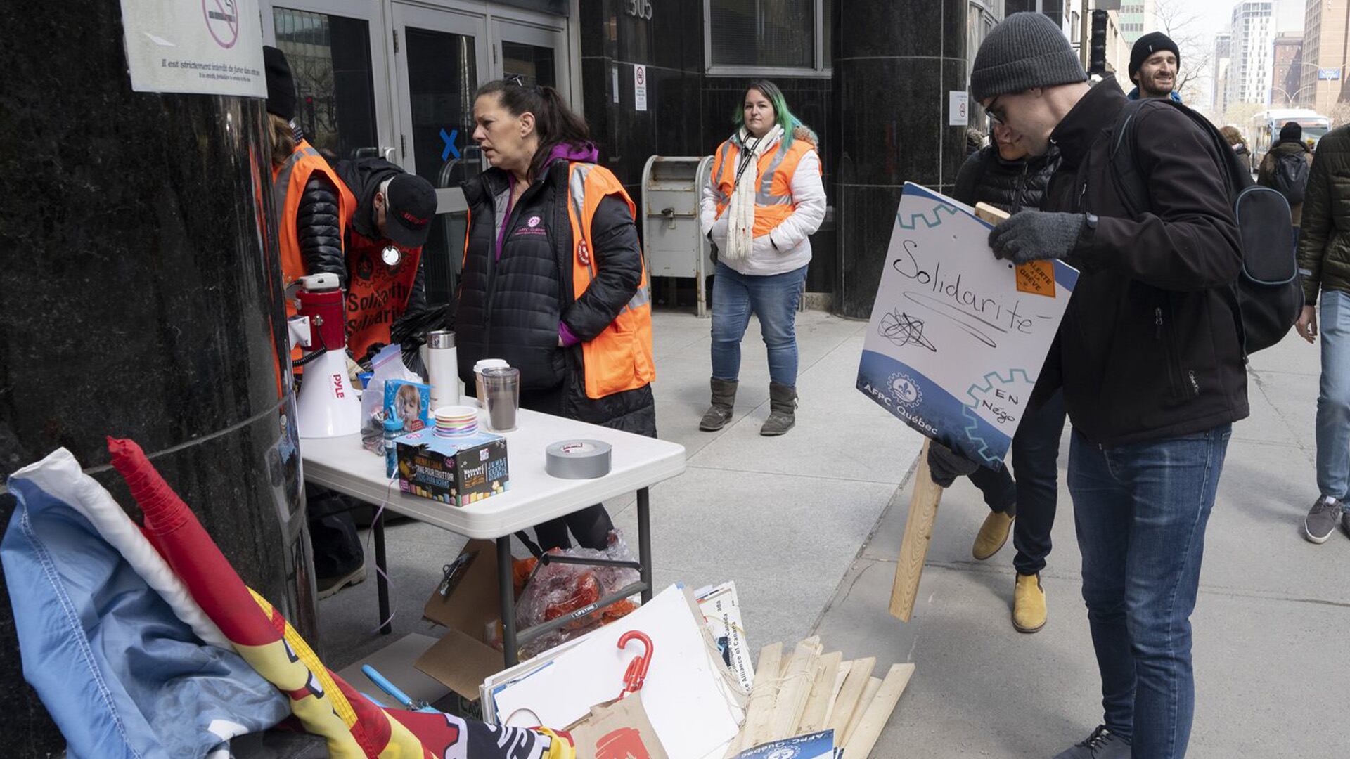Jeudi, des grévistes ont manifesté au poste frontalier de Lacolle. D'autres manifestants de l'Alliance de la fonction publique ont notamment défilé dans des rues de Québec afin de montrer leur mécontentement.