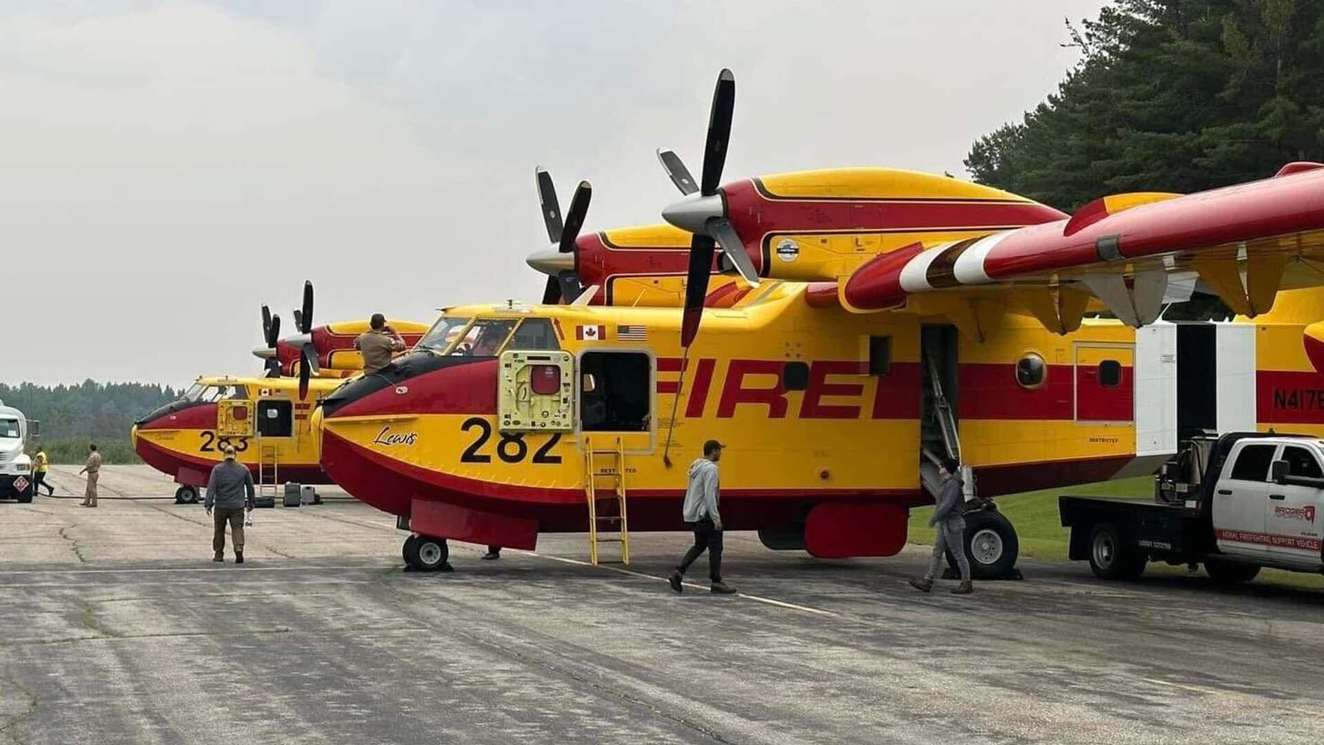Au total, 19 avions-citernes sont en action sur le terrain, 14 appartiennent au Québec, deux sont loués et quatre sont prêtés par la Nouvelle-Écosse. Et 38 pilotes de Service aérien gouvernemental sont à leur commande durant cette crise.