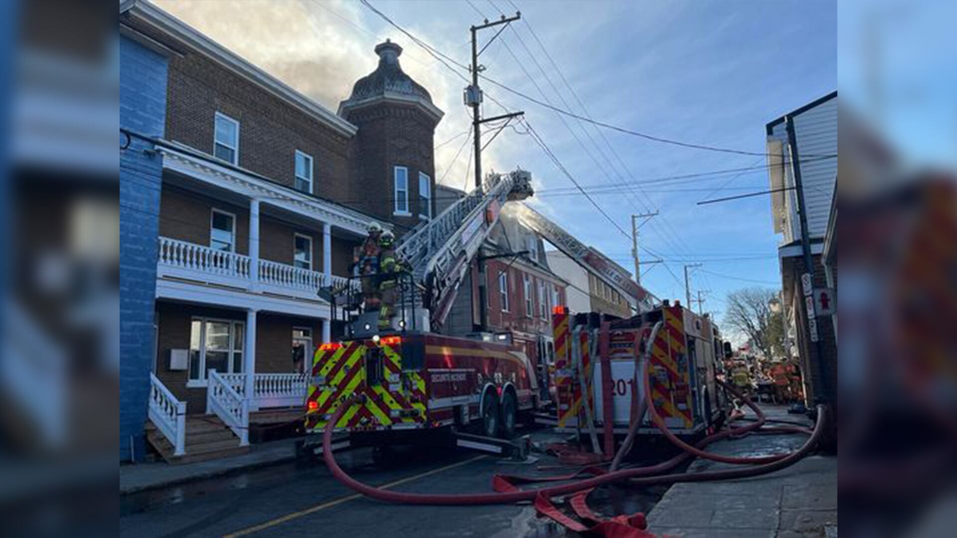 En raison des risques de propagation des flammes aux immeubles voisins, une cinquième alarme a rapidement été demandée, ce qui a exigé le déploiement de tous les pompiers de Lévis en congé.