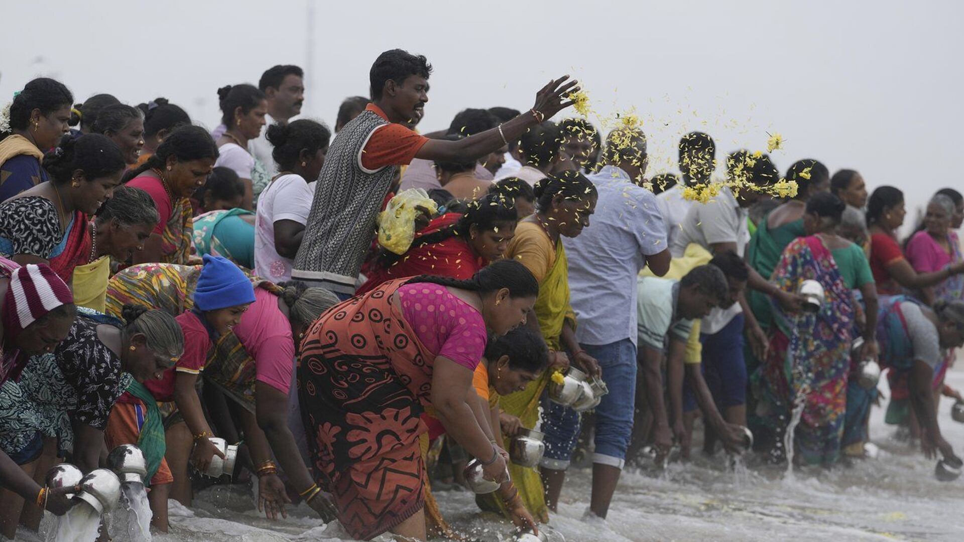 En Inde, des centaines de personnes se sont rassemblées sur la plage de Marina, dans la ville de Chennai, dans le sud de l’État du Tamil Nadu. Ils ont versé du lait dans la mer pour apaiser les dieux et ont offert des fleurs et des prières pour les morts, tandis que les tambours battaient en arrière-plan.