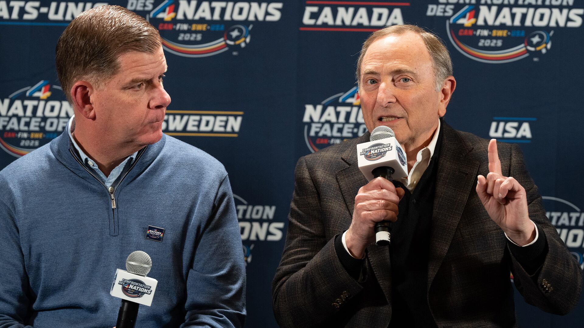 Le commissaire de la LNH, Gary Bettman, et le directeur de l'AJLNH, Marty Walsh, ont fait l'annonce, moins de deux heures avant le début du premier match de la Confrontation des 4 nations entre le Canada et la Suède au Centre Bell.