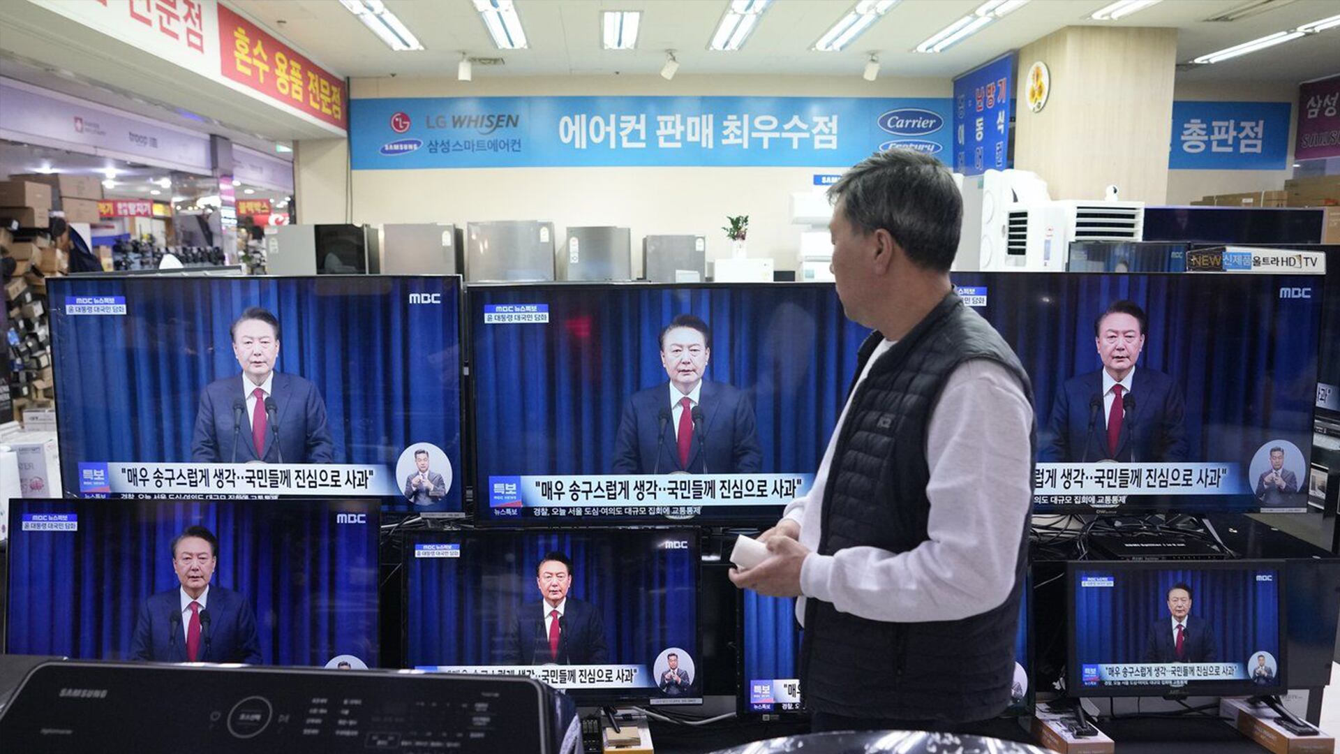 Dans une brève allocution télévisée samedi matin (heure locale), M. Yoon a déclaré qu'il ne se soustrairait pas à la responsabilité juridique ou politique de la déclaration et a promis de ne pas tenter à nouveau d'imposer la loi martiale. Il a ajouté qu'il laisserait à son parti politique conservateur le soin de tracer la voie à suivre dans la tourmente politique du pays, « y compris en ce qui concerne les questions liées à mon mandat ».