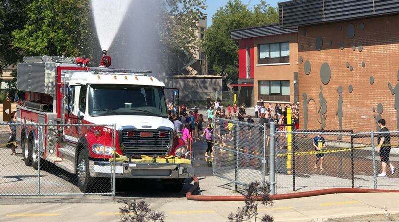 À Beauharnois en Montérégie, les pompiers de la Ville se sont rendus aux abords de l'école primaire Jésus-Marie pour arroser les élèves durant les récréations ce mercredi après-midi.